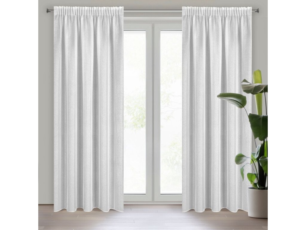 Firana gotowa ze STŘÍBRNÝm nadrukiem szerokość: 140 cm, długość: 270 cm, kolor: BÍLÝ, Gramatura: 80 GSM, Skład: 100% poliesterDoplňkové parametry