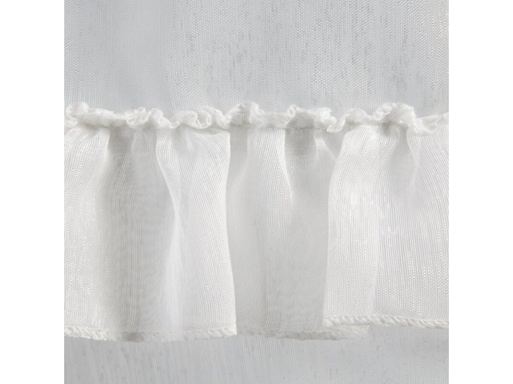 Lekka firana uszyta z tkaniny o strukrutze drobnego deszczyku udekorowana u dołu trzema falbanami. Romantyczna dekoracja sprawdzi się też jako lekka zasłona. szerokość: 140 cm, długość: 270 cm, kolor: BÍLÝ, Gramatura: 50 GSM, Skład: 100% poliesterDoplňkové parametry