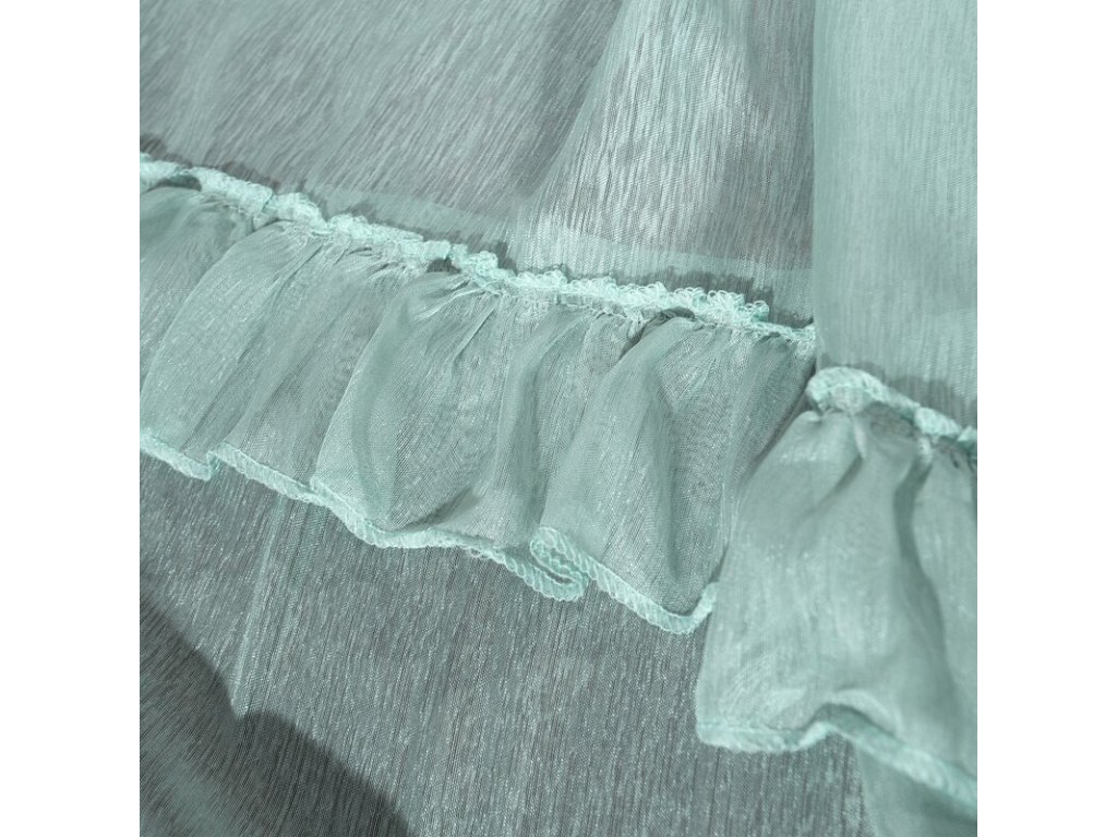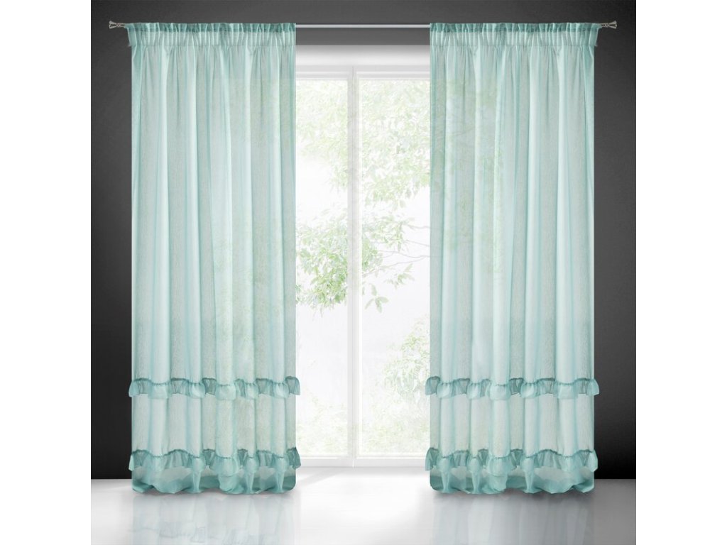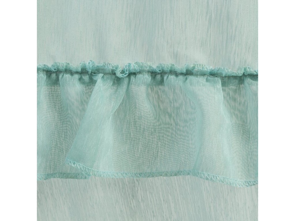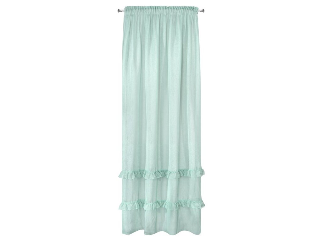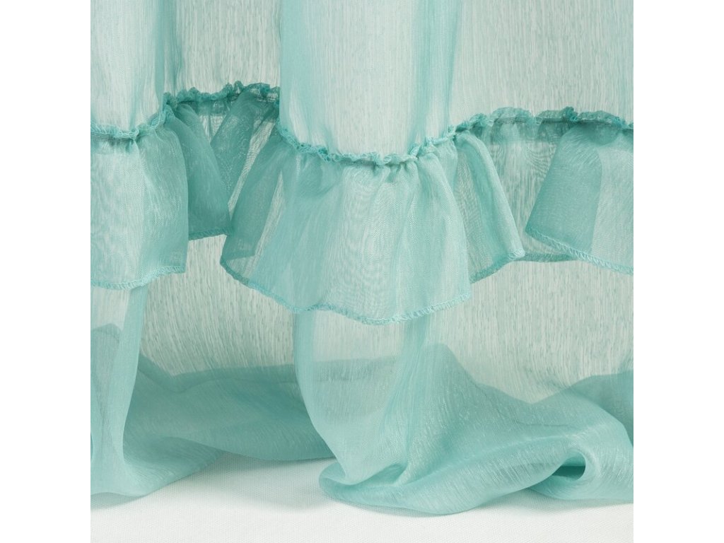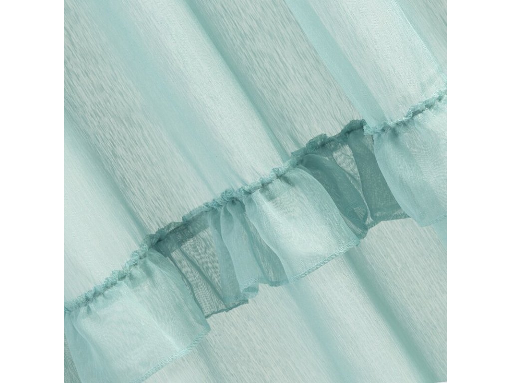 Lekka firana uszyta z tkaniny o strukrutze drobnego deszczyku udekorowana u dołu trzema falbanami. Romantyczna dekoracja sprawdzi się też jako lekka zasłona. szerokość: 140 cm, długość: 270 cm, kolor: MÁTOVÝ, Gramatura: 50 GSM, Skład: 100% poliesterDoplňkové parametry