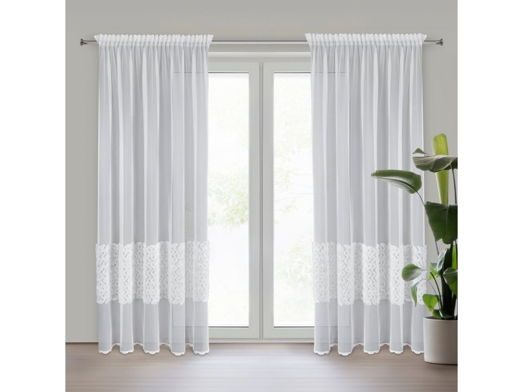 Firana gotowa zdobiona aplikacją szerokość: 140 cm, długość: 270 cm, kolor: BÍLÝ, Gramatura: 55 GSM, Skład: 100% poliesterDoplňkové parametry