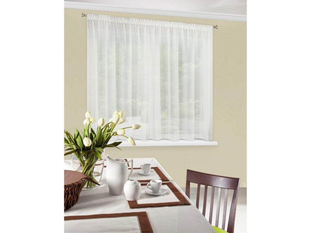 Klasyczna, długa, krótka firana uszyta z gładkiego, miękkiego woalu. Subtelna tkanina łatwo się pracuje a po upięciu układa się w miekkie fale. szerokość: 300 cm, długość: 160 cm, kolor: KRÉMOVÝ, Gramatura: 50 GSM, Skład: 100% poliesterDoplňkové parametry