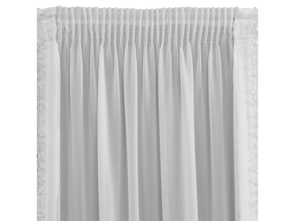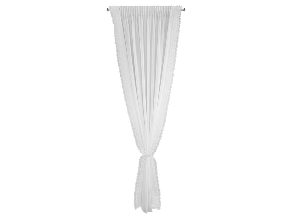 Firana gotowa zdobiona aplikacją z dekoracyjnym troczkiem szerokość: 140 cm, długość: 270 cm, kolor: BÍLÝ, Gramatura: 60 GSM, Skład: 100% poliesterDoplňkové parametry