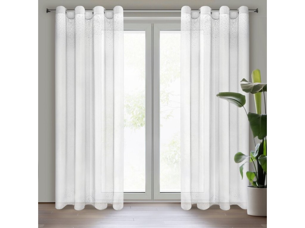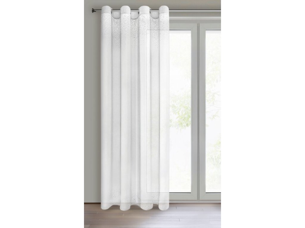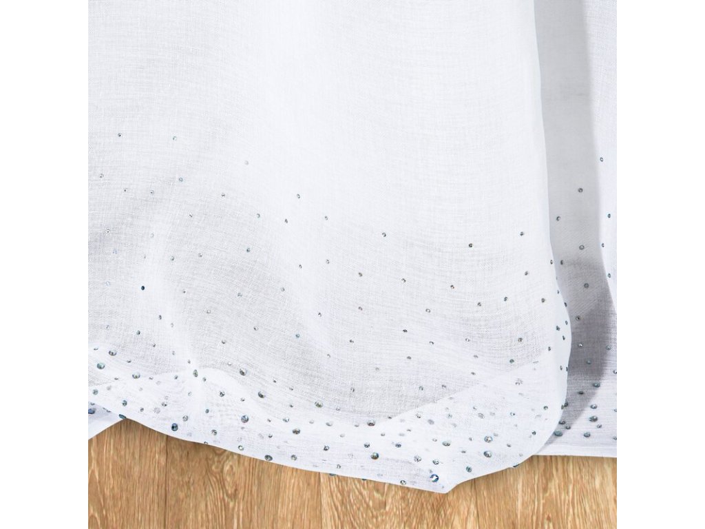 Delikatna firana o charakterze nowoczesnego glamour. Miękka, lekka tkanina udekorowana w górnej części pasem dżetów. Bardzo zwiewna. szerokość: 140 cm, długość: 250 cm, kolor: BÍLÝ, Gramatura: 70 GSM, Skład: 100% poliesterDoplňkové parametry
