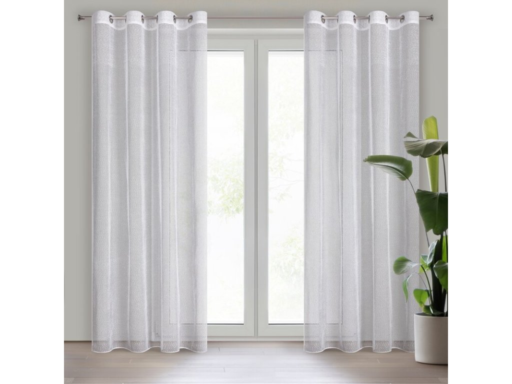 Firana o strukturze siatki połaczonej z buklą, zdobiona srebrną nicią szerokość: 140 cm, długość: 260 cm, kolor: BÍLÝ, Gramatura: 90 GSM, Skład: 100% poliesterDoplňkové parametry