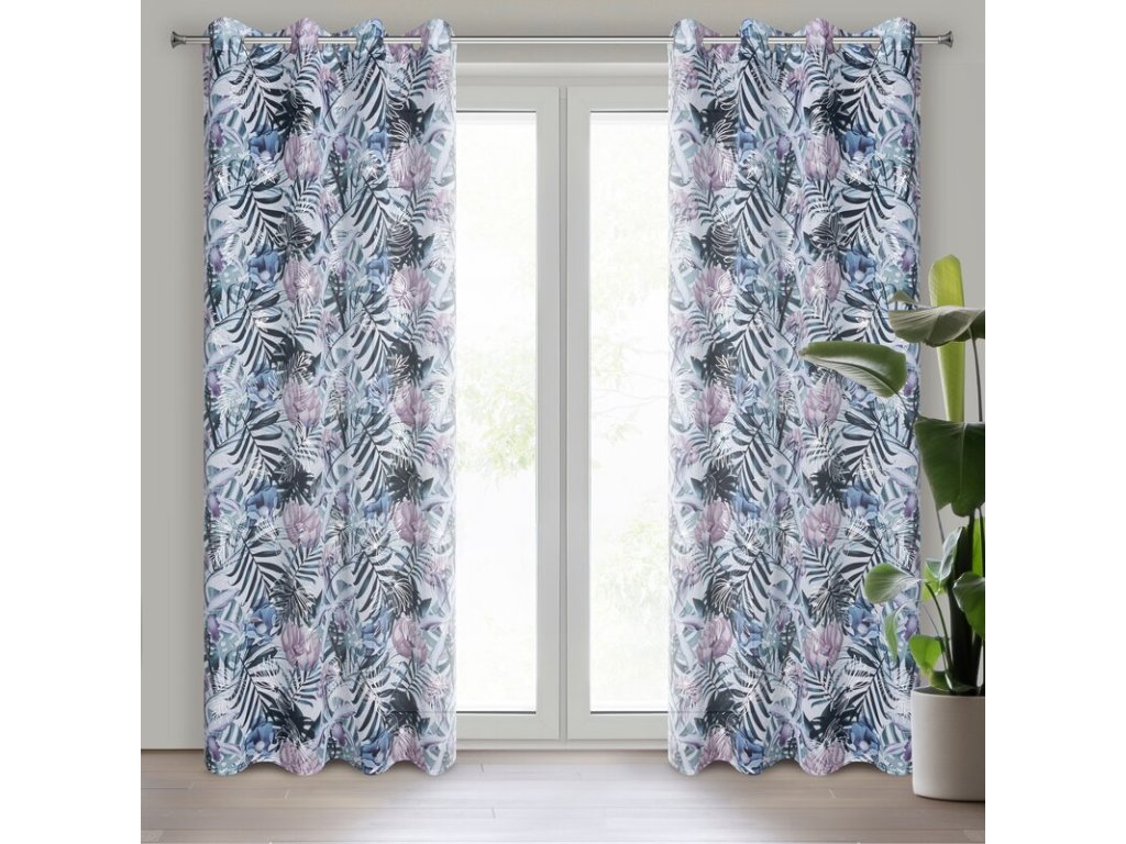 Zasłona z motywami botanicznymi z błyszczącym nadrukiem szerokość: 140 cm, długość: 250 cm, kolor: BÍLÝ, Gramatura: 80 GSM, Skład: 100% poliesterDoplňkové parametry