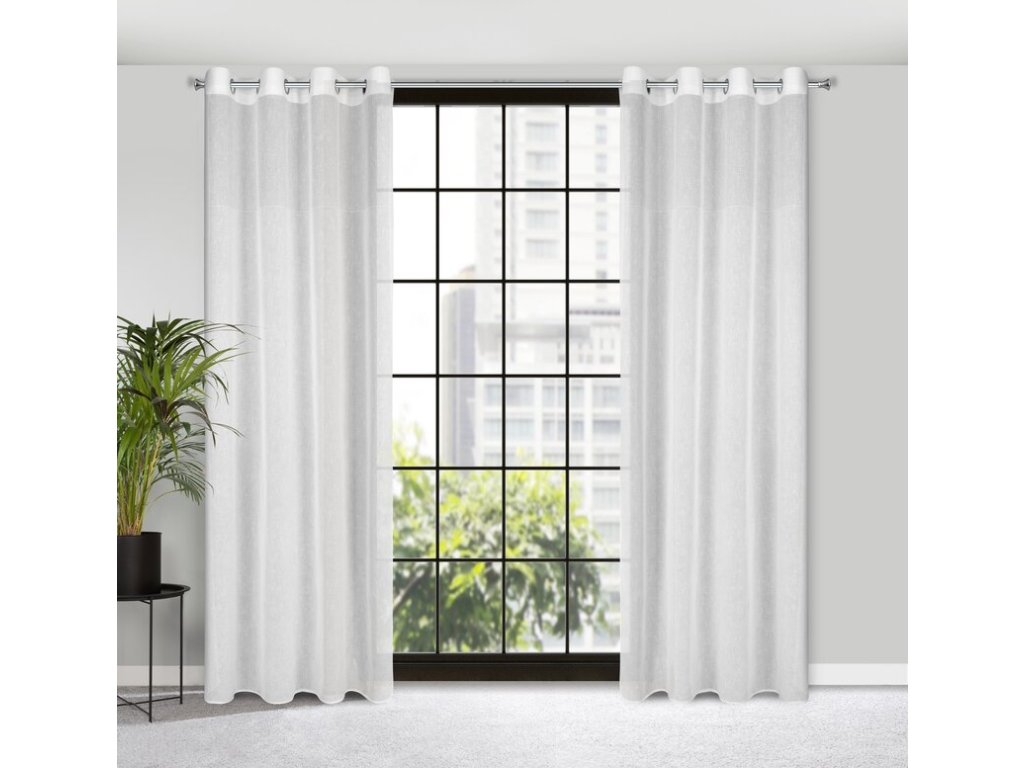Firana gotowa zdobiona pasem tkaniny z siatki szerokość: 140 cm, długość: 250 cm, kolor: BÍLÝ, Gramatura: 115 GSM, Skład: 100% poliesterDoplňkové parametry