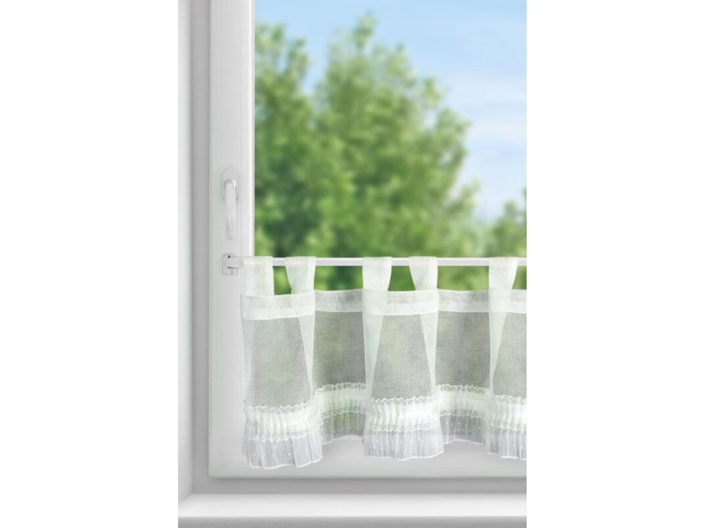 Firana gotowa z ozdobną obszywką szerokość: 150 cm, długość: 30 cm, kolor: BÍLÝ, Skład: 100% poliesterDoplňkové parametry