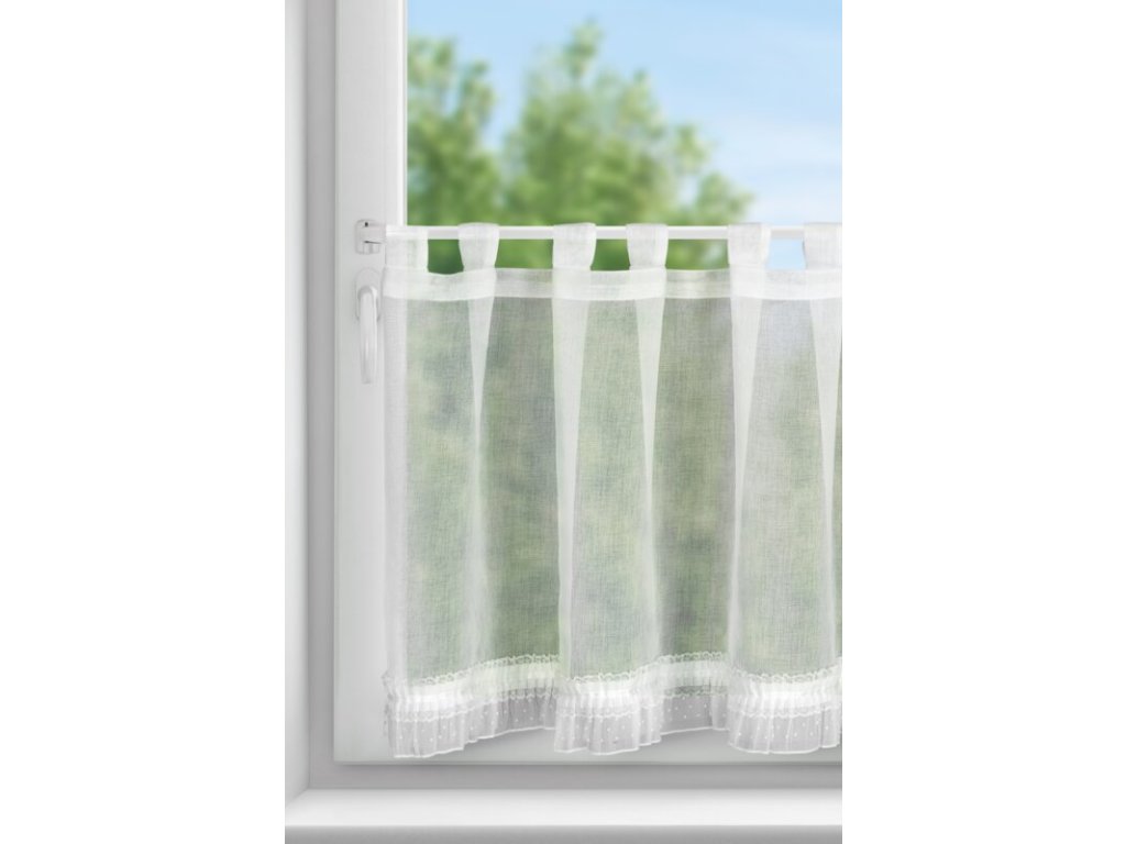 Firana gotowa z ozdobną obszywką szerokość: 60 cm, długość: 150 cm, kolor: BÍLÝ, Skład: 100% poliesterDoplňkové parametry