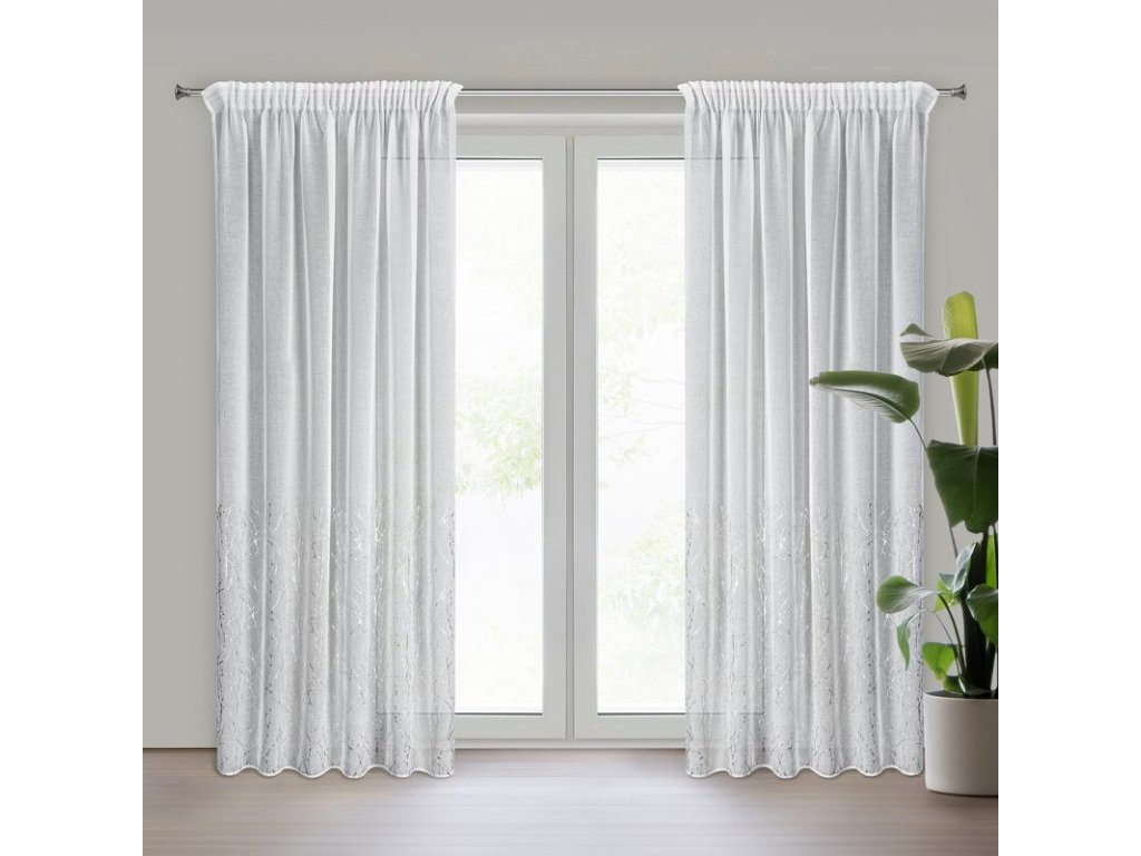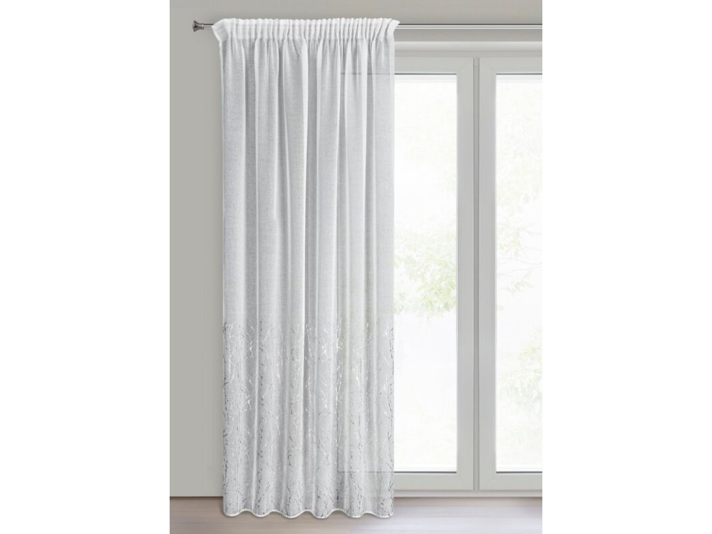 Firana gotowa z błyszczącym gumowanym nadrukiem szerokość: 140 cm, długość: 270 cm, kolor: BÍLÝ, Gramatura: 70 GSM, Skład: 100% poliesterDoplňkové parametry
