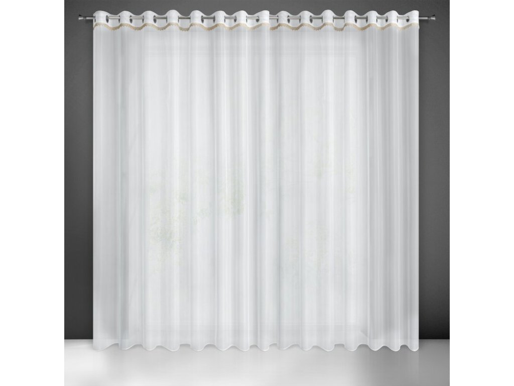 Firana gotowa z ozdobną tasiemką szerokość: 300 cm, długość: 250 cm, kolor: BÍLÝ, Gramatura: 35 GSM, Skład: 100% poliesterDoplňkové parametry