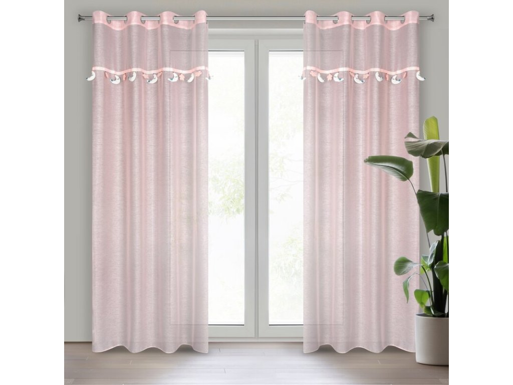 Firana gotowa z wszytą taśmą dekoracyjną z motywem dziecięcym szerokość: 140 cm, długość: 250 cm, kolor: RŮŽOVÝ, Gramatura: 50 GSM, Skład: 100% poliesterDoplňkové parametry
