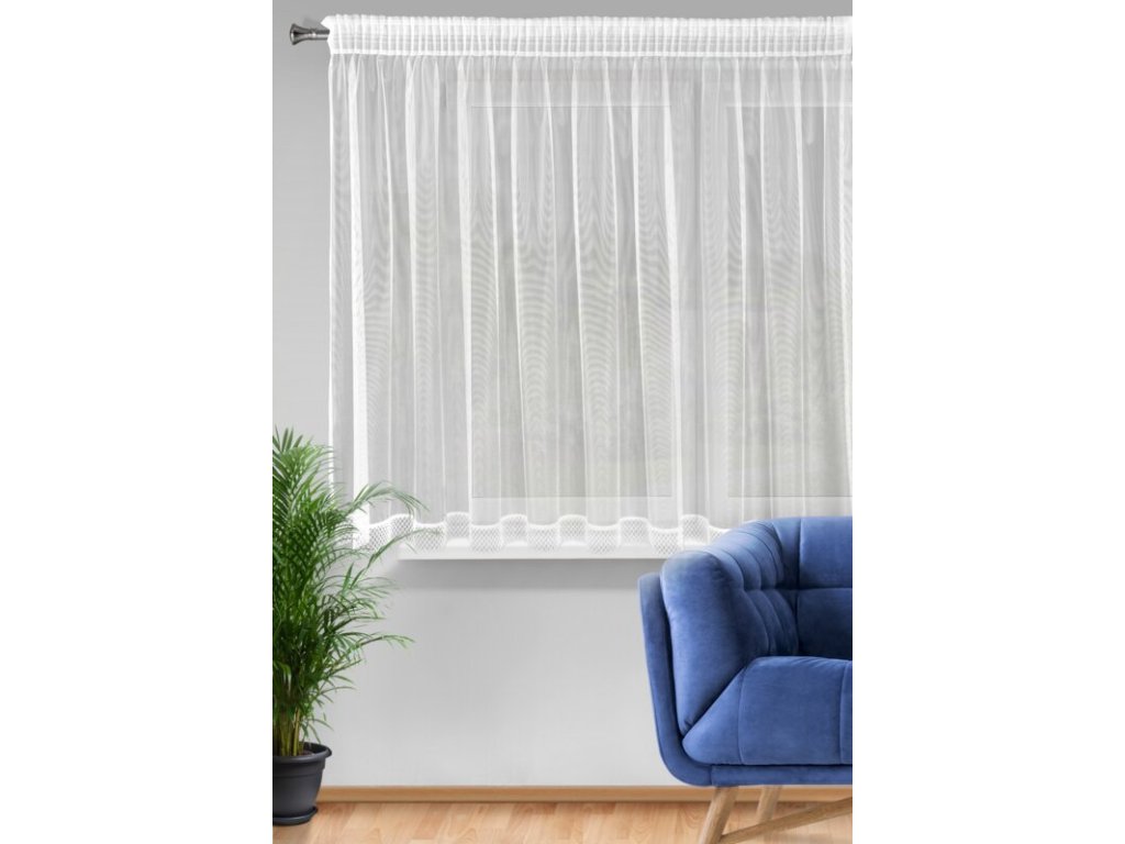 Firana gotowa z ozdobną koronką szerokość: 300 cm, długość: 145 cm, kolor: BÍLÝ, Gramatura: 40 GSM, Skład: 100% poliesterDoplňkové parametry
