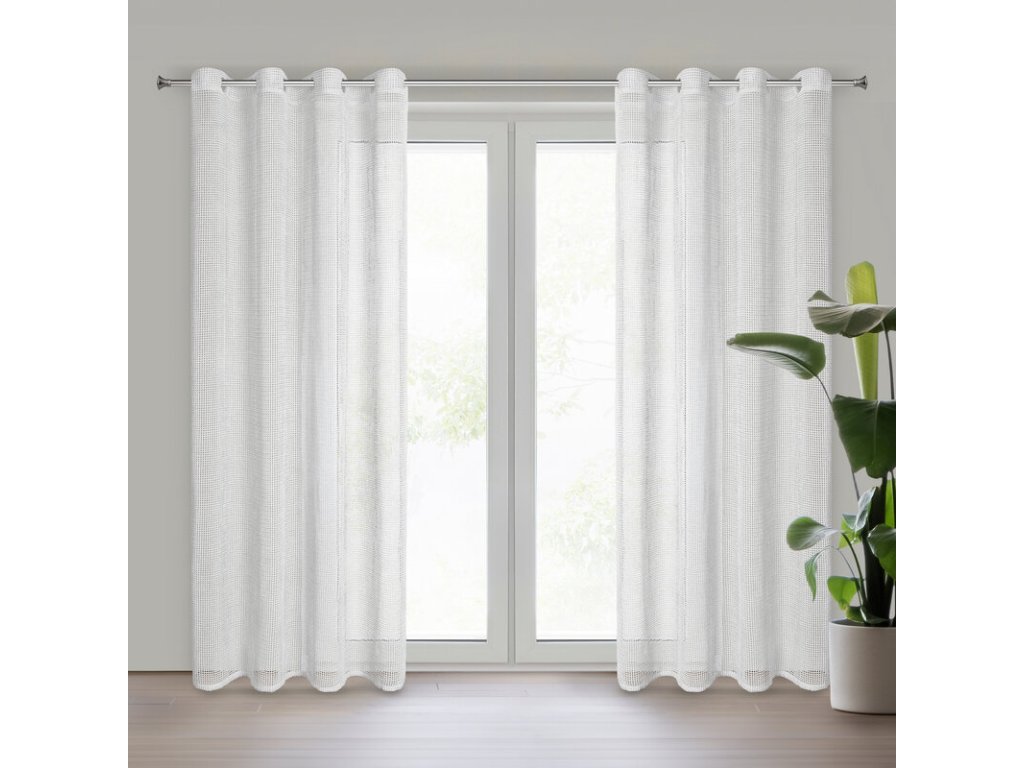 Firana gotowa z siatki szenilowej szerokość: 140 cm, długość: 250 cm, kolor: BÍLÝ, Gramatura: 180 GSM, Skład: 100% poliesterDoplňkové parametry