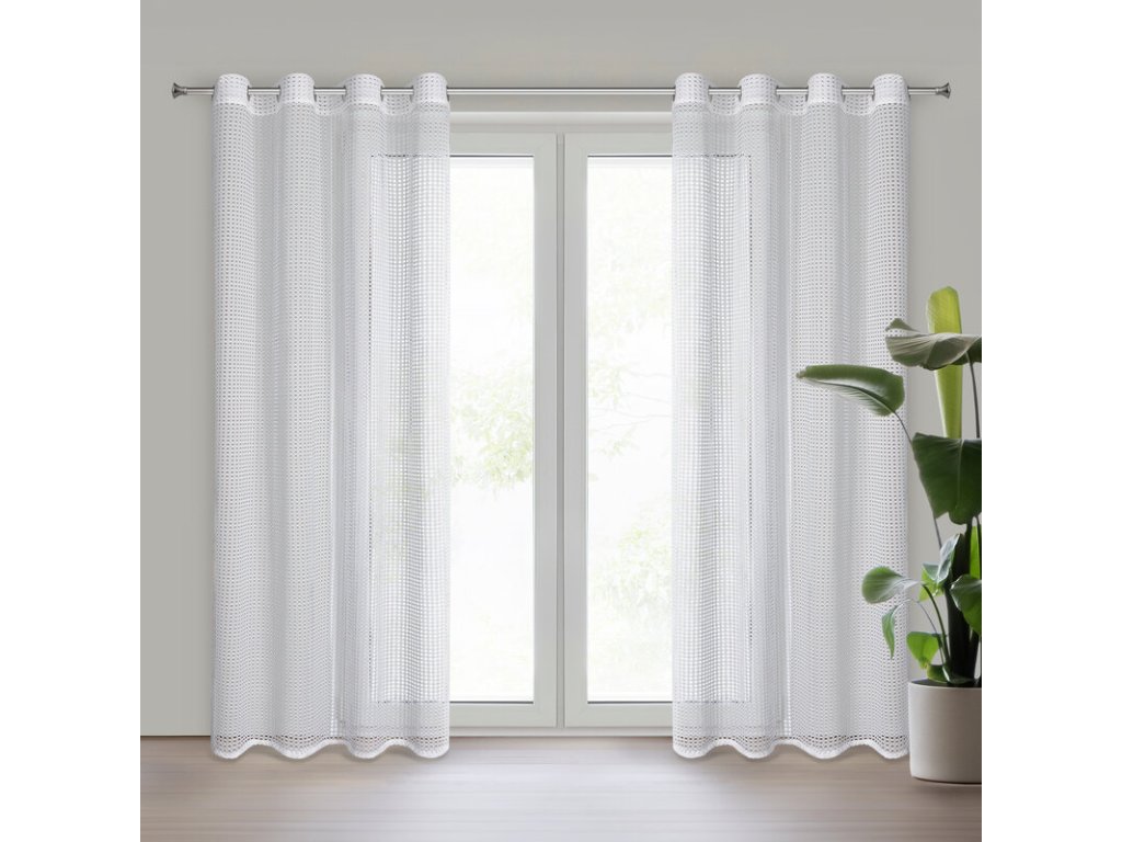Firana gotowa o strukturze siatki szerokość: 140 cm, długość: 250 cm, kolor: BÍLÝ, Gramatura: 120 GSM, Skład: 100% poliesterDoplňkové parametry