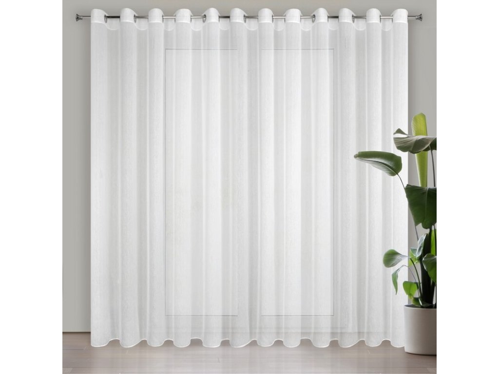 Delikatna firana uszyta z tkaniny o strukturze drobnego deszczyku doskonale przepuszcza światło. Łatwa w prasowaniu i praniu dekoracja. Wzór pionowy. szerokość: 350 cm, długość: 250 cm, kolor: BÍLÝ, Gramatura: 50 GSM, Skład: 100% poliesterDoplňkové parametry