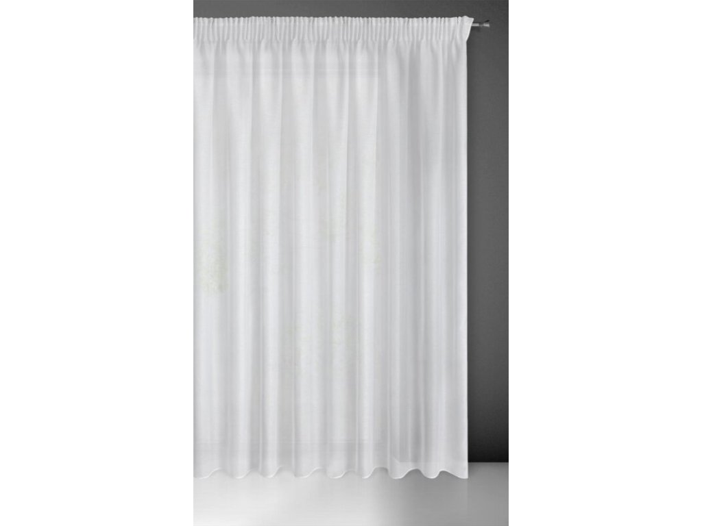 Delikatna firana uszyta z tkaniny o strukturze drobnego deszczyku doskonale przepuszcza światło. Łatwa w prasowaniu i praniu dekoracja. Wzór poziomy. szerokość: 300 cm, długość: 270 cm, kolor: BÍLÝ, Gramatura: 50 GSM, Skład: 100% poliesterDoplňkové parametry