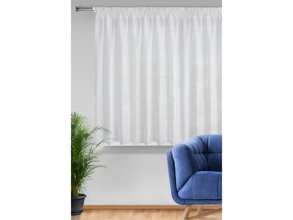 Delikatna firana uszyta z tkaniny o strukturze drobnego deszczyku doskonale przepuszcza światło. Łatwa w prasowaniu i praniu dekoracja. Wzór pionowy. szerokość: 350 cm, długość: 160 cm, kolor: BÍLÝ, Gramatura: 50 GSM, Skład: 100% poliesterDoplňkové parametry