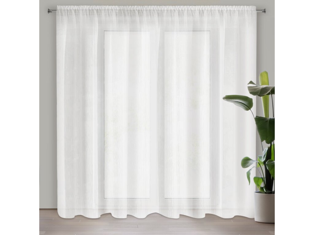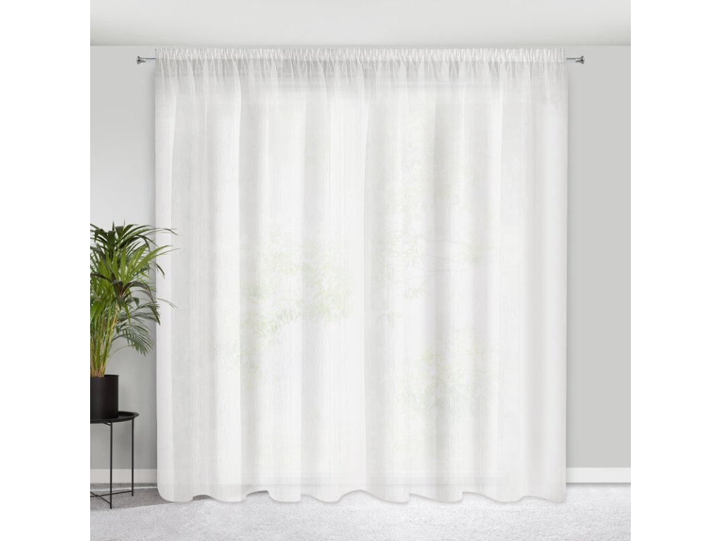 Delikatna firana uszyta z tkaniny o strukturze drobnego deszczyku doskonale przepuszcza światło. Łatwa w prasowaniu i praniu dekoracja. Wzór pionowy. szerokość: 350 cm, długość: 250 cm, kolor: KRÉMOVÝ, Gramatura: 50 GSM, Skład: 100% poliesterDoplňkové parametry