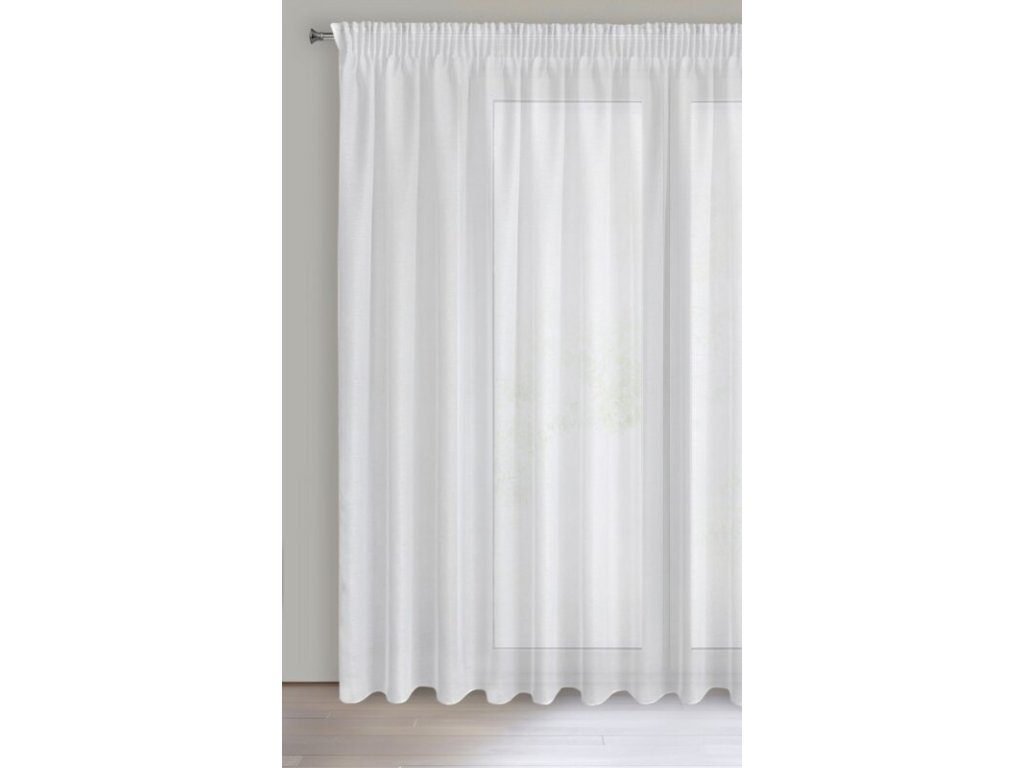 Delikatna firana uszyta z tkaniny o strukturze drobnego deszczyku doskonale przepuszcza światło. Łatwa w prasowaniu i praniu dekoracja. Wzór pionowy. szerokość: 400 cm, długość: 250 cm, kolor: BÍLÝ, Gramatura: 50 GSM, Skład: 100% poliesterDoplňkové parametry