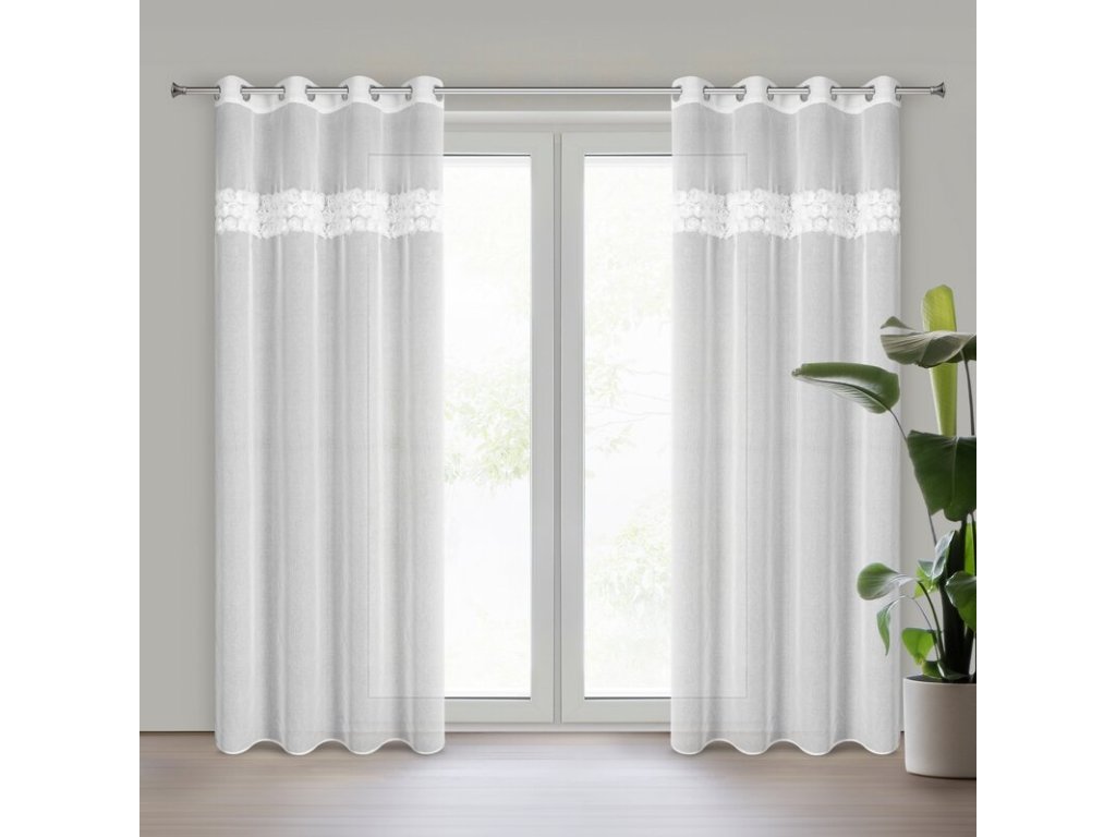 Firana gotowa z aplikacją szerokość: 140 cm, długość: 250 cm, kolor: BÍLÝ, Gramatura: 70 GSM, Skład: 100% poliesterDoplňkové parametry