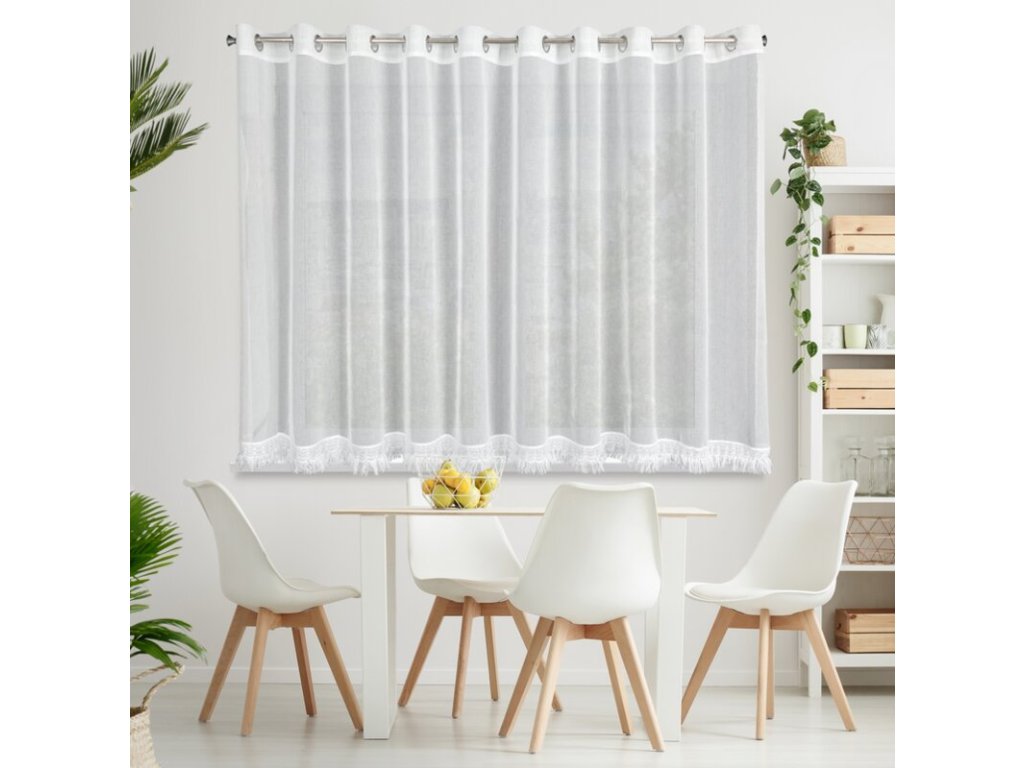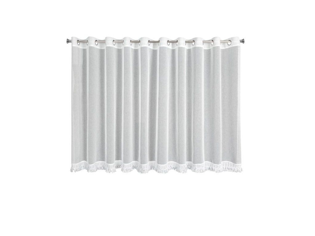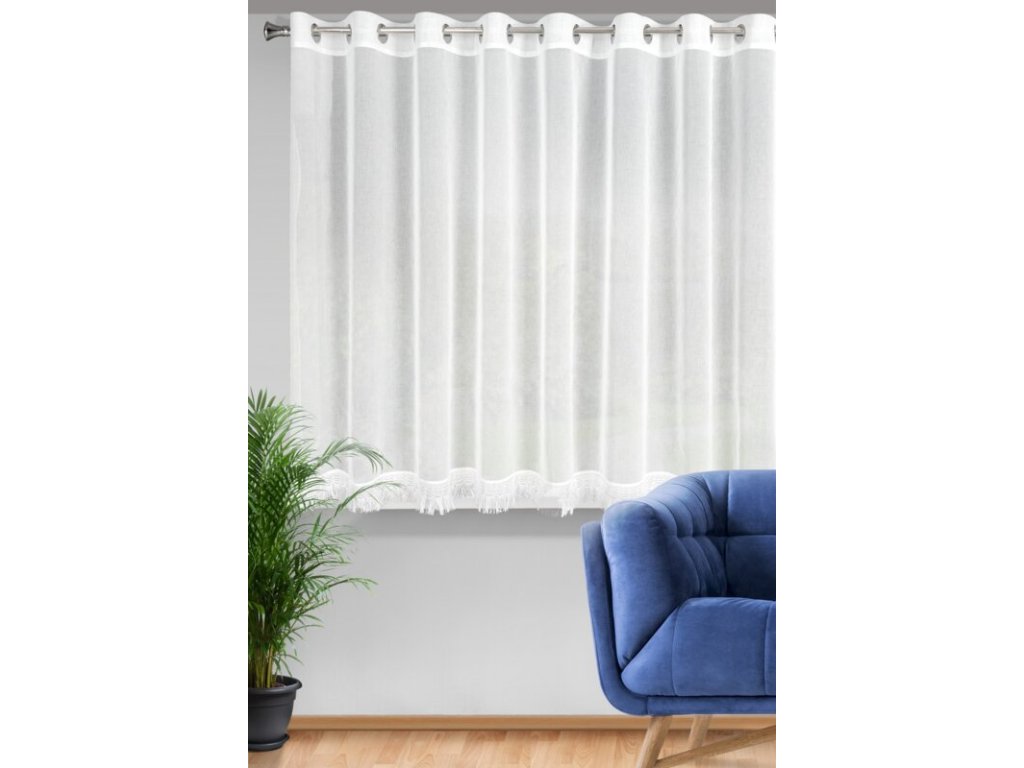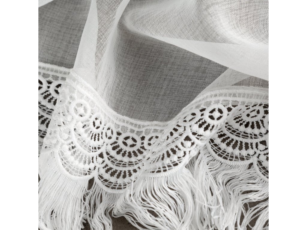 Firana gotowa z ozdobną obszywką z frędzlami szerokość: 350 cm, długość: 145 cm, kolor: BÍLÝ, Skład: 100% poliesterDoplňkové parametry