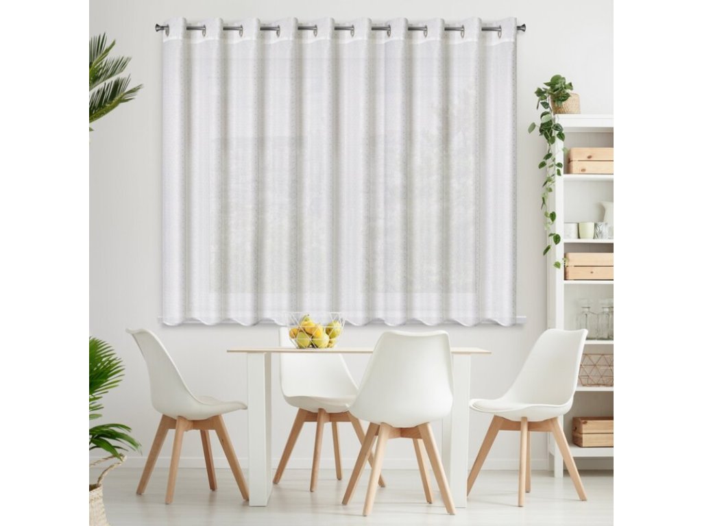 Miękka firana z nieprzejrzystej tkaniny dekorowanej drobnym nadrukiem rombów. Doskonale rozprasza światło. Wymaga prasowania po lewej stronie. szerokość: 300 cm, długość: 160 cm, kolor: BÍLÝ, Gramatura: 50 GSM, Skład: 100% poliesterDoplňkové parametry