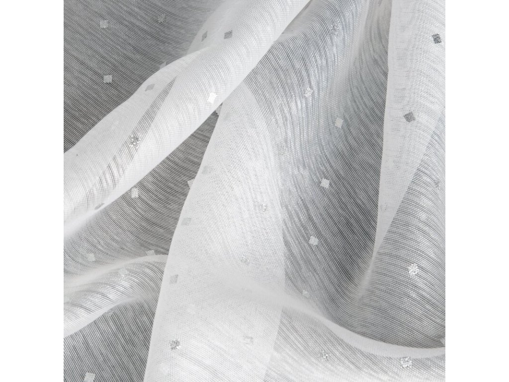 Miękka firana z nieprzejrzystej tkaniny dekorowanej drobnym nadrukiem STŘÍBRNÝch rombów. Doskonale rozprasza światło. Wymaga prasowania po lewej stronie. szerokość: 140 cm, długość: 270 cm, kolor: BÍLÝ, Gramatura: 50 GSM, Skład: 100% poliesterDoplňkové parametry