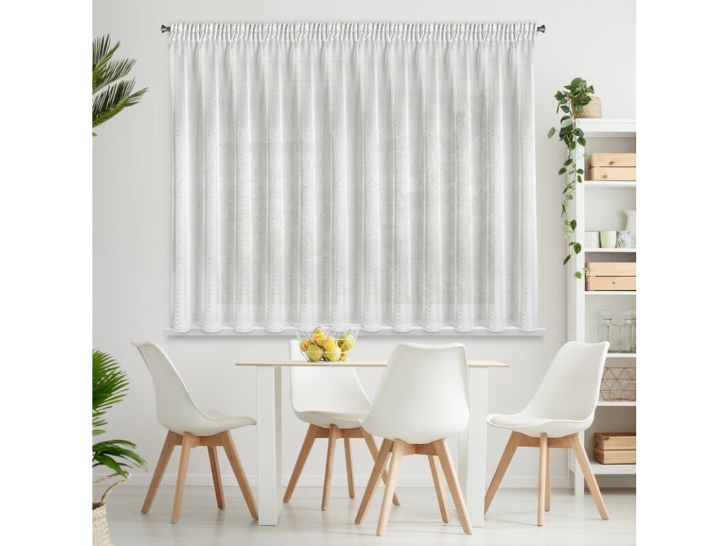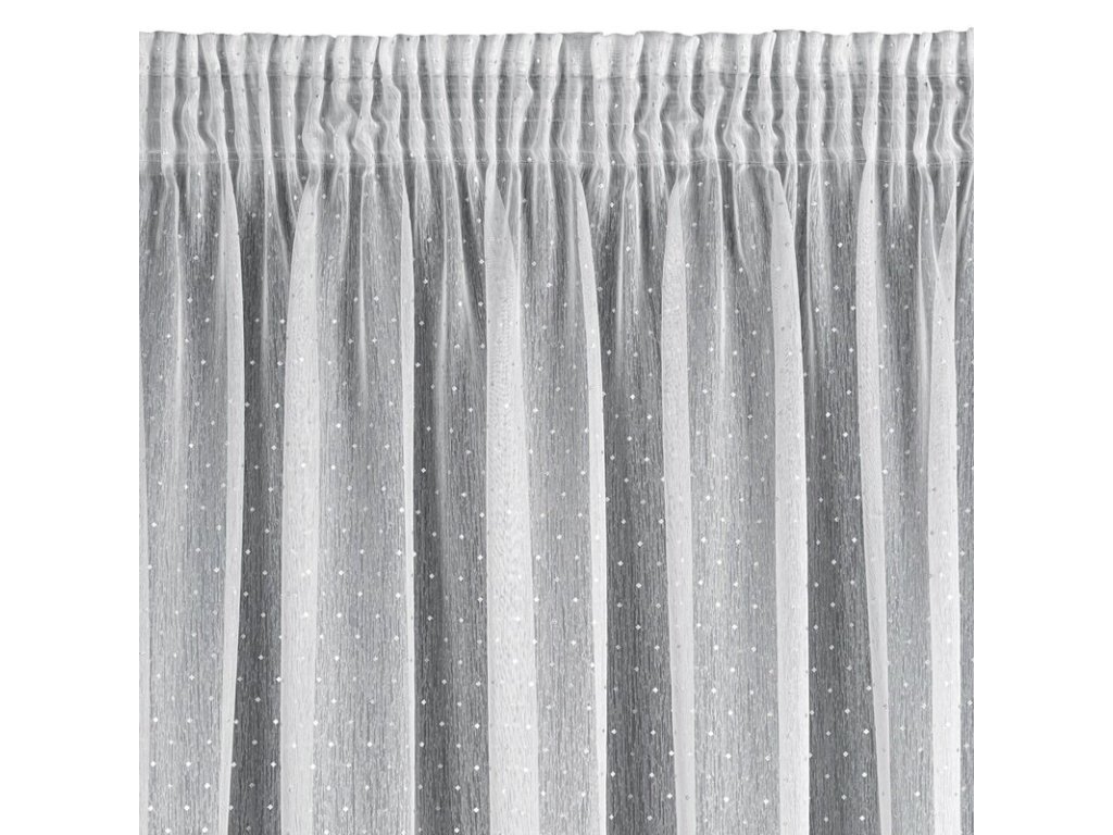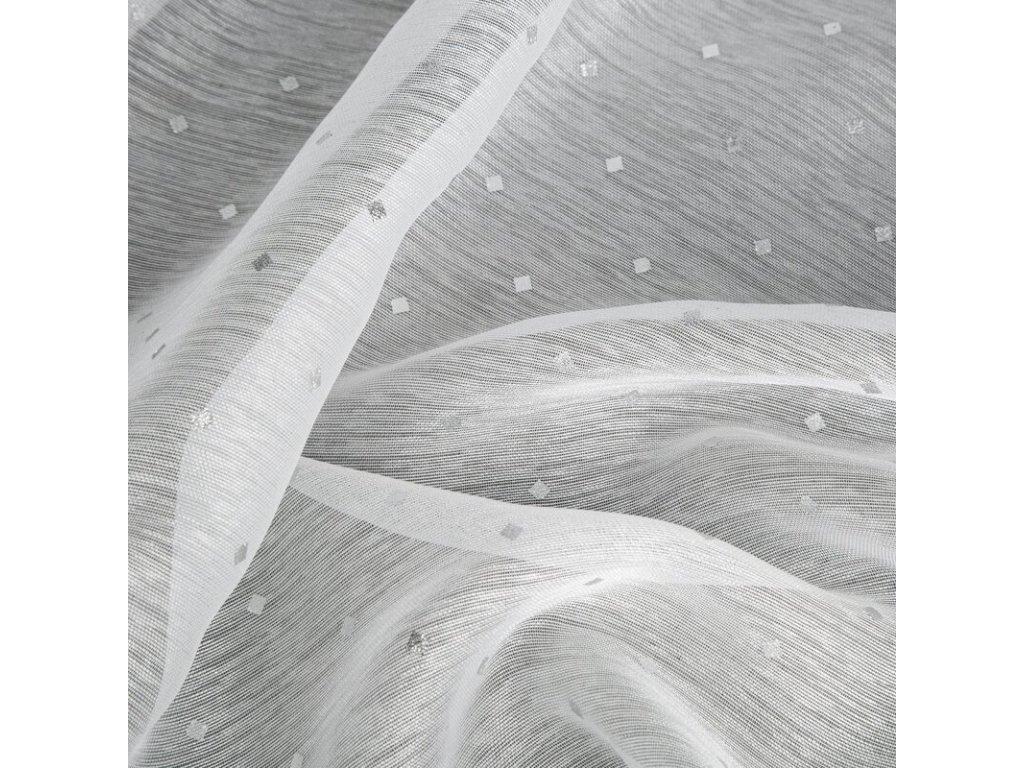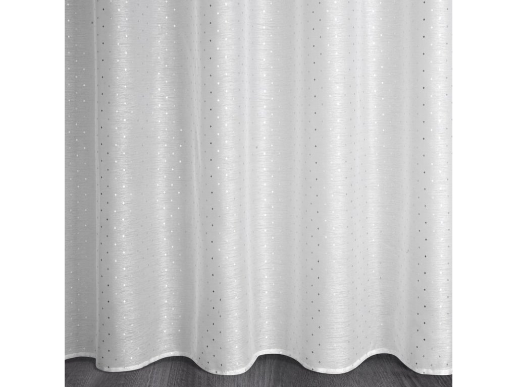 Miękka firana z nieprzejrzystej tkaniny dekorowanej drobnym nadrukiem STŘÍBRNÝch rombów. Doskonale rozprasza światło. Wymaga prasowania po lewej stronie. szerokość: 300 cm, długość: 150 cm, kolor: BÍLÝ, Gramatura: 50 GSM, Skład: 100% poliesterDoplňkové parametry