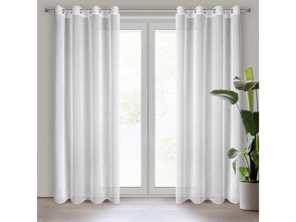 Firana gotowa, jednokolorowa o strukturze drobnego deszczyku szerokość: 140 cm, długość: 250 cm, kolor: BÍLÝ, Gramatura: 70 GSM, Skład: 100% poliesterDoplňkové parametry