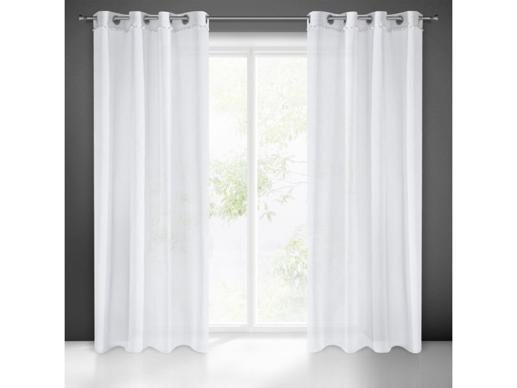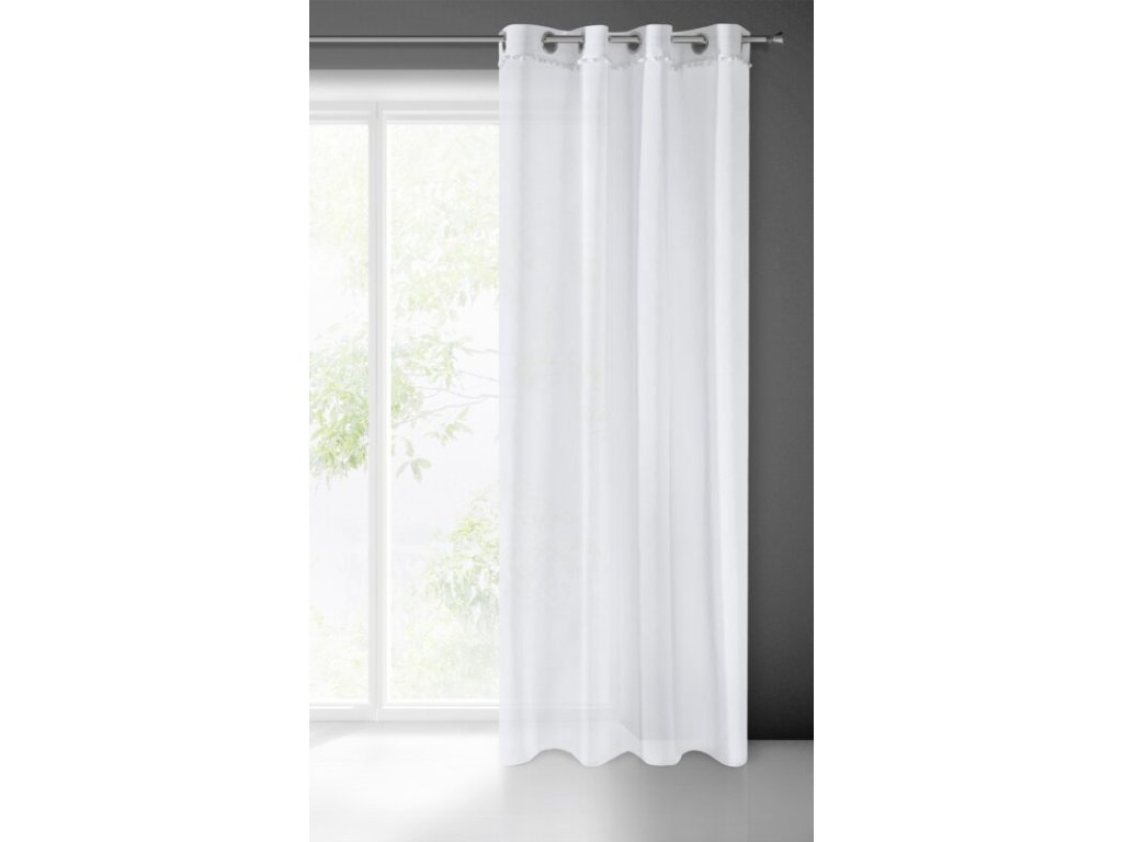 Lekka firana z dodatkiem przezroczystej nici ozodobiona lamówką z drobnymi pomponikami ma uniwersalny charakter. Bardzo łatwa w prasowaniu, gładka firana. szerokość: 140 cm, długość: 250 cm, kolor: BÍLÝ, Gramatura: 75 GSM, Skład: 100% poliesterDoplňkové parametry