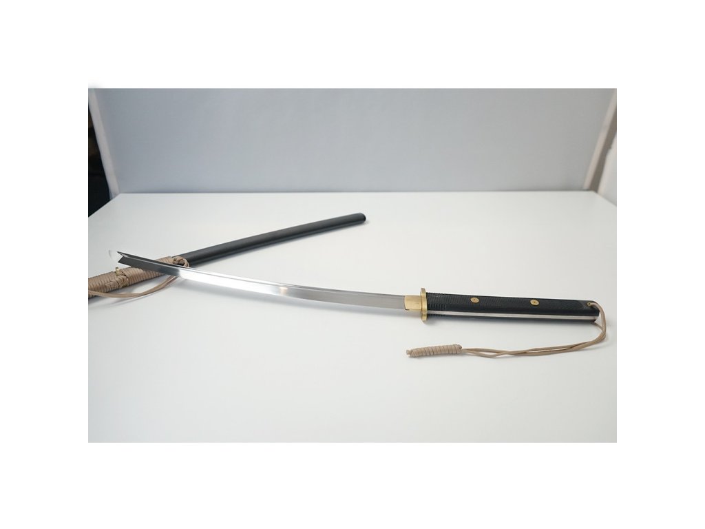 Ručně kovaná leštěná čepel z oceli L6 té nejvyšší kvality. Jedná se o špičkovou repliku samurajského meče, která je vhodná k sekovým zkouškám a lze ji rozložit. Tato čepel byla vyzkoušena a testována tak, aby odstranila vše co jí stojí v cestě ! Sori (zakřivení čepele) je speciálně navrženo tak, aby bylo dosaženo co možná nejjemnějších a nejčistších řezů. Uhlíková ocel L6 má působivou tvrdost ve škále HRC- perfektní kombinace této tvrdosti je podtrženo zakřivením čepele Sori, které umožňuje snadné přeseknutí tatami, slaměné rohože, nebo bambusu pro tameshigiri. Full tang konstrukce tohoto wakizashi výrazně zvyšuje sílu meče. Hrot čepele je tvarovaný shinogi-zukuri a chu kissaki se skutečným yokote, které je velmi dobře definováno tím, že hamon prochází po celé délce přes Boshi. O tomto meči můžeme směle říci, že je READY FOR BATTLE !