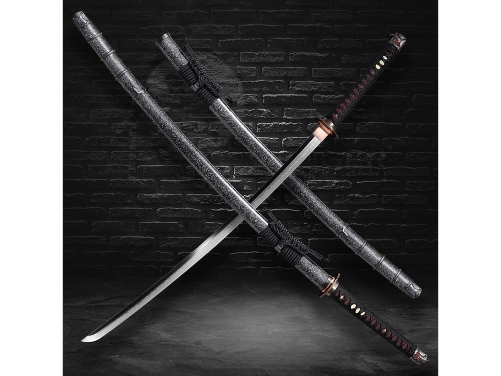 Výrazný reálný Choji hamon je tvořen dle dávných tradičních metod, které vychází z mnohaletých zkušeností kovářského mistra, který výrobou této nádherné zbraně strávil několik dnů. Vše na tomto meči je individuálně zhotoveno, včetně saye a habaki, jsou použity nejkvalitnější komponenty, včetně špičkového laku na sayu, japonského hedvábí a skutečné rejnočí kůže nejvyšší kvality. Jedná se o špičkovou repliku samurajského meče, která je vhodná k sekovým zkouškám a lze ji rozložit na jednotlivé části. Tato čepel byla vyzkoušena a testována tak, aby odstranila vše co jí stojí v cestě ! Sori (zakřivení čepele) je speciálně navrženo tak, aby bylo dosaženo co možná nejjemnějších a nejčistších řezů. To vše v kombinaci s výběrem tradičního kovaného Koshirae zaručuje, že získáte to nejlepší z hlediska vzhledu i funkčnosti. Uhlíková ocel T-10 má působivou tvrdost HRC 58 - perfektní kombinace této tvrdosti je podtrženo zakřivením čepele Sori, které umožňuje snadné přeseknutí tatami, slaměné rohože, nebo bambusu pro tameshigiri. Full tang konstrukce této katany výrazně zvyšuje sílu meče. Čepel je typu shinogi-zukuri, tento typ čepele se vyrábí od 10.století našeho letopočtu. Hrot meče chu kissaki se skutečným Diamond-Shaped Yokote, které je velmi dobře definováno tím, že hamon prochází po celé délce přes Boshi. Yokote je velmi důležité pro strukturální integritu špičky meče. Pomáhá absorbovat otřes, rozptýlí sílu a přispívá k stabilitě a síle meče při tzv. sekořezu. Tato katana (samurajský meč) je vhodná na použití v praxi, firma Dellinger se však zříká jakékoliv odpovědnosti za zranění a poškození vzniklá při použití. Schraňujte mimo dosah dětí ! Jakákoliv manipulace se samurajským mečem je na vaší vlastní odpovědnost. Nezapomeňte, že máte ve svých rukou smrtící zbraň !