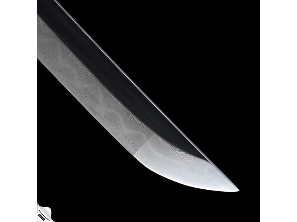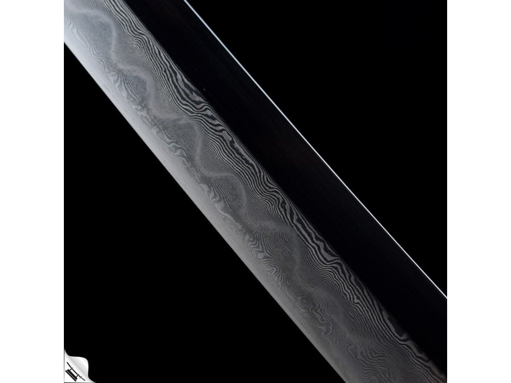Tato čepel je vyrobena ze skládané oceli 1075. Čepel byla přeložena 11krát, aby vytvořila 2048 vrstev, které zvýší pružnost a tvrdost čepele. Viditelné zvlněné zrno na čepeli je výsledkem opakovaného skládání během kování. Výroba této čepeli prochází 14 procesy až po ruční broušení- povrch čepele jako zrcadlo. Čepel byla ve finální fázi ručně leštěna kamenem hazuya - tím je dosaženo téměř žiletkového ostří (razor sharp). Výrazný reálný Choji Hamon je tvořen dle dávných tradičních metod, které vychází z mnohaletých zkušeností kovářského mistra. Jedná se o špičkovou repliku samurajského meče, která je vhodná k sekovým zkouškám a lze ji rozložit na jednotlivé části. Tato čepel byla vyzkoušena a testována tak, aby odstranila vše co jí stojí v cestě ! Sori (zakřivení čepele) je speciálně navrženo tak, aby bylo dosaženo co možná nejjemnějších a nejčistších řezů. To vše v kombinaci s výběrem tradičního Koshirae zaručuje, že získáte to nejlepší z hlediska vzhledu i funkčnosti. Uhlíková skládaná ocel AISI1075 má působivou tvrdost ve škále HRC- perfektní kombinace této tvrdosti je podtrženo zakřivením čepele Sori, které umožňuje snadné přeseknutí tatami, slaměné rohože, nebo bambusu pro tameshigiri. Full tang konstrukce této katany výrazně zvyšuje sílu meče. Hrot čepele je tvarovaný shinogi-zukuri a chu kissaki se skutečným Diamond-Shaped Yokote, které je velmi dobře definováno tím, že hamon prochází po celé délce přes Boshi.