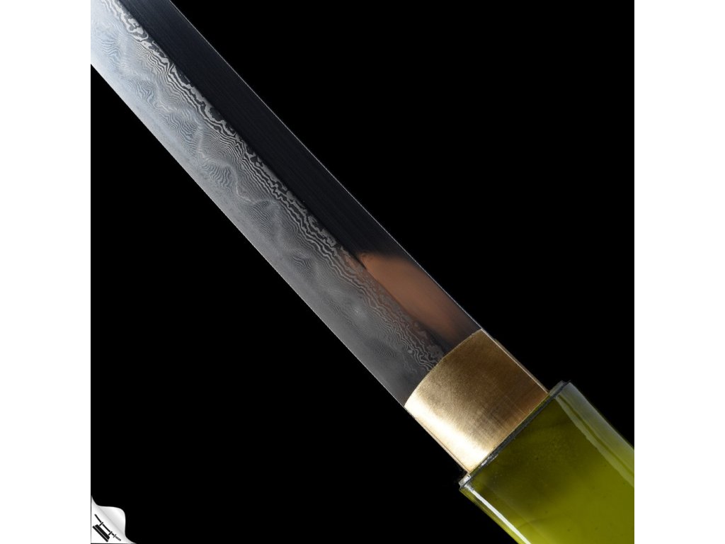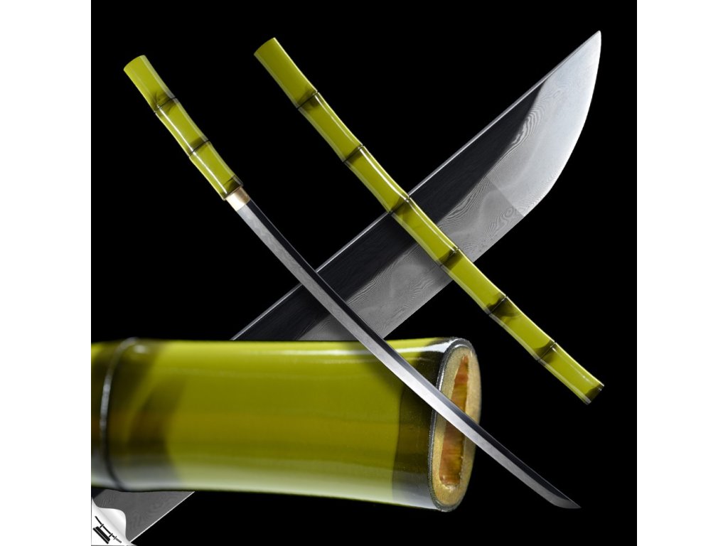 Japanese Take Shikomizue, zelený bambus, Folded Steel, Real Choji Hamon