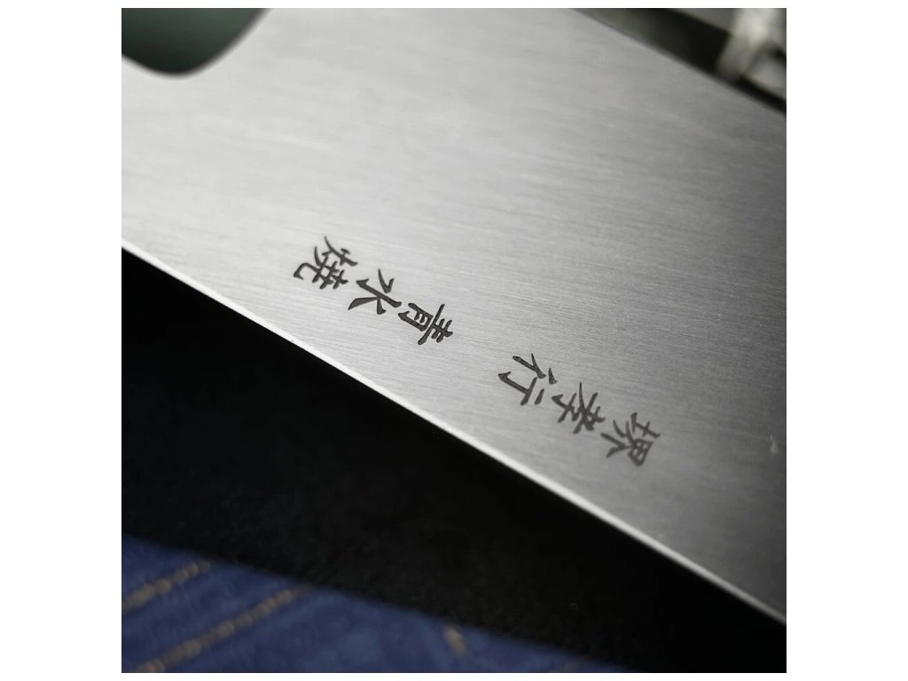 Velmi ostrý japonský nůž Mukimono, série Sakai Takayuki Honyaki Aonikou. Nůž byl vyroben ve městě Sakai ve společnosti Aoki Hamono Co.,Ltd., která je po celém světě známá výrobou nožů. Čepel nože je ručně vykovaná tradičním způsobem z jednoho kusu vysoce kvalitní uhlíkové oceli, zpracované technologií Honyaki a se zrcadlovou úpravou. Obvykle je použita ocel označená jako White Steel nebo Blue Steel. Honyaki je proces kalení vodou, čímž vzniká ostří velmi tvrdé, které si dlouho zachovává svou ostrost. Nejjemnější honyaki (mizu-honyaki) jsou pak odlišně kaleny pomocí vrstvy hlíny přes hřbet, aby se dosáhlo měkkého hřbetu a tvrdého břitu, což vede k nádhernému hamonu. Je to stejná metoda jaká se používá pro tradiční výrobu katany. Jejich kování je extrémně obtížné, a proto vyžadují vysokou úroveň dovedností a zkušeností.