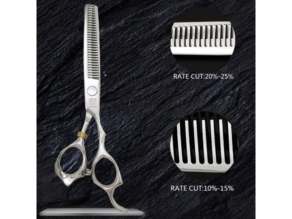 Nůžky TITAN T3D630V ACRM jsou modelovací jednostranné nůžky. Jsou extrémně ostré a ručně broušené. Výsledkem je dlouhodobá ostrost a vynikající retence hran téměř žiletkového ostří. Konvexní ostří nůžek je ideální pro klouzavý střih. Nůžky mají ergonomicky tvarované očko pro palec a pevnou opěru pro malíček, díky čemuž se zajistí pohodlné držení s odlehčeným a bezchybně přesným střihem. Středové uložení s kuličkovým ložiskem zaručí přesné navádění břitů a snadný chod.