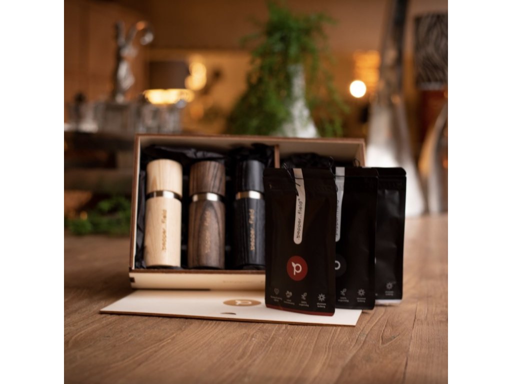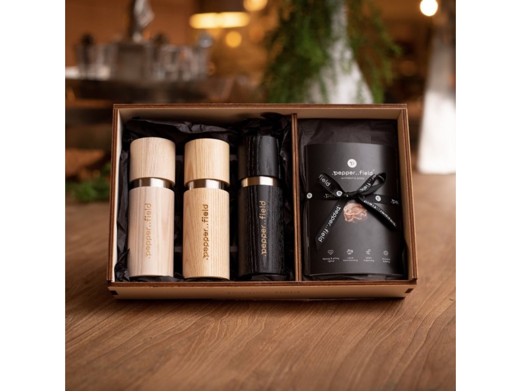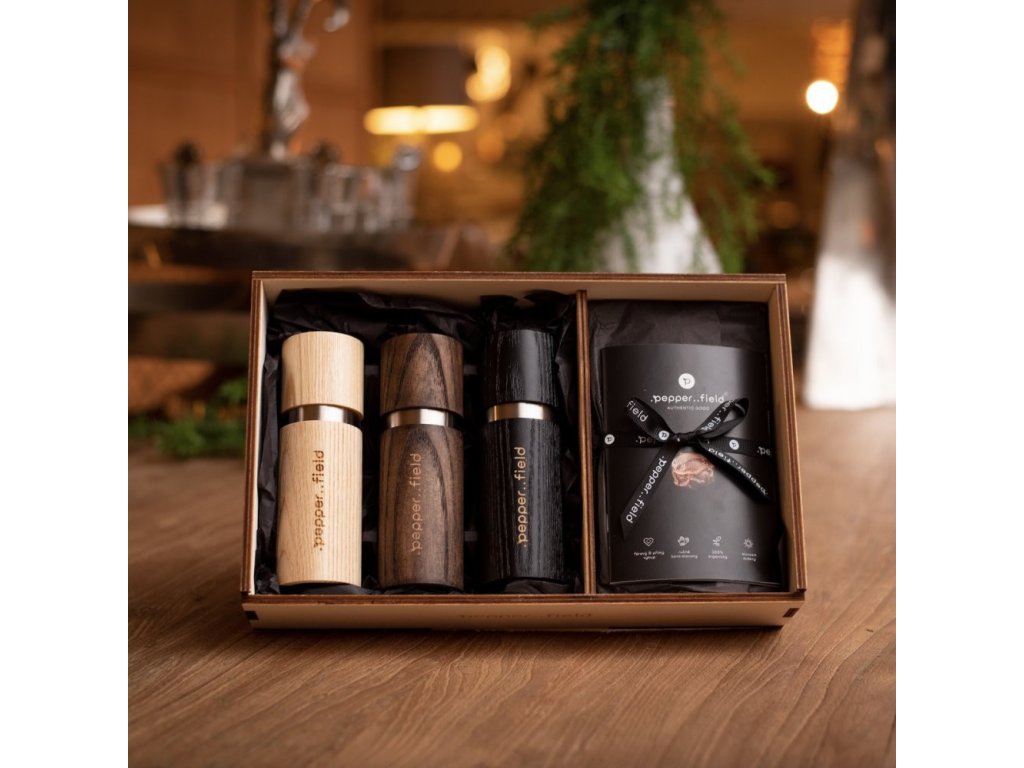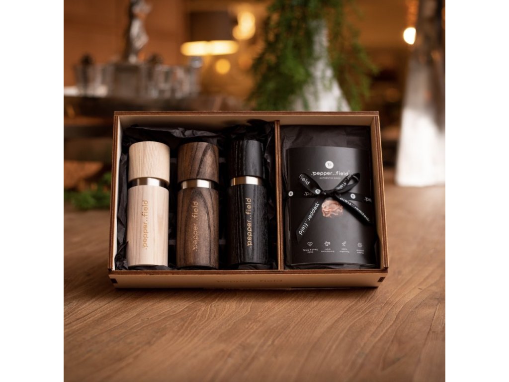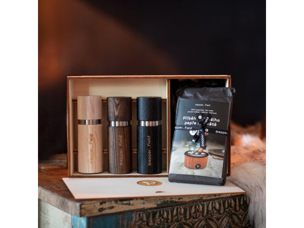 Kampotský pepř - sada 3 mlýnků a 3 doypacků (3x50g) v obrovském dárkovém kufříku