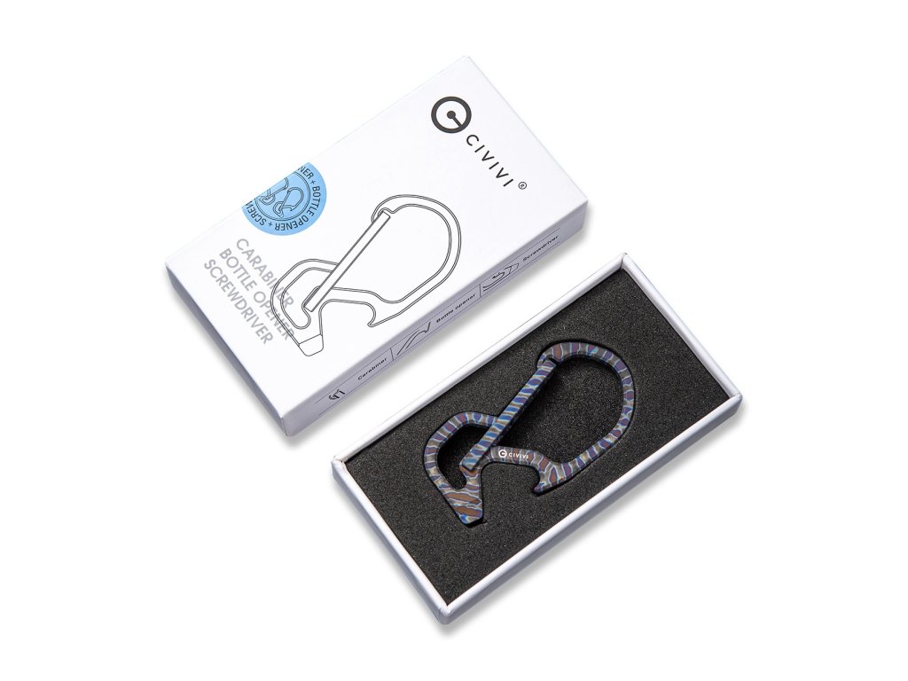 Karabina Click od CIVIVI je titanový multifunkční nástroj, který je svou konstrukcí zcela geniální. Je rozdělena na dvě části, menší použijete na klíče, větší na opasek, batoh či cokoliv jiného. Karabina disponuje také kombinovaným plochým šroubovákem/páčidlem a otvírákem na lahve. Click na nás udělal obrovský dojem a každý jeho aspekt je užitečný, určitě bude cenným pomocníkem, kterého budete mít neustále u sebe.