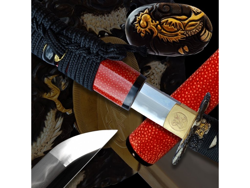 Ručně kovaná katana Akai Kawa s reálným hamonem. Čepel z ocele AISI 1075, ostrá katana vhodná k sekovým zkouškám, klasické provedení celé této katany působí klidným až chladným dojmem, vše je podřízeno účelnosti, žádná okázalost a přesto vyvážená důstojnost, kterou ocení jak znalec, tak náhodný pozorovatel. Katana je dodávána v barevném plátěném vaku, lze ji rozložit.
