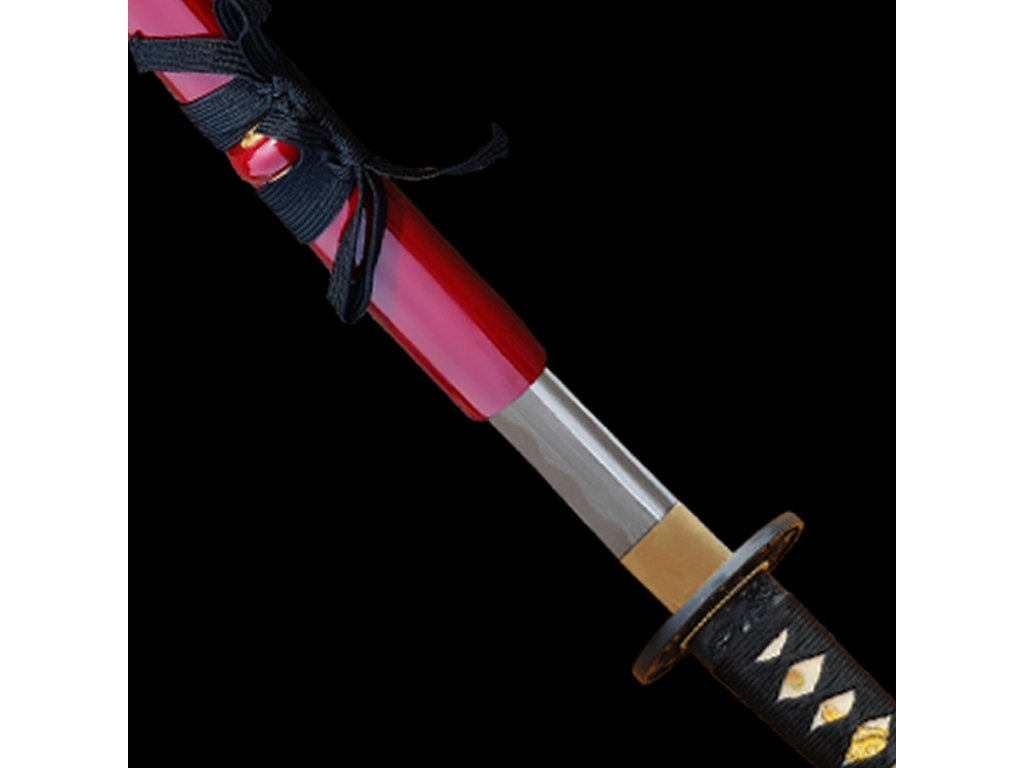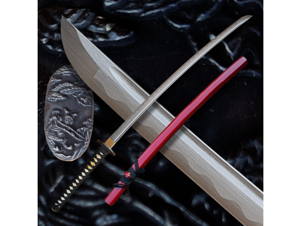 katana KJOSAI z překládané oceli AISI 1045 s leštěnou imitací hamonu