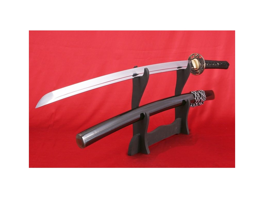 Reálný Choji hamon je tvořen dle dávných tradičních metod, které vychází z mnohaletých zkušeností kovářských mistrů. Tento proces vytváří na čepeli překrásný hamon Hada a Martensite (zrna). Jedná se o špičkovou repliku samurajského meče, která je vhodná k sekovým zkouškám a lze ji rozložit. Tato čepel byla vyzkoušena a testována tak, aby odstranila vše co jí stojí v cestě ! Sori (zakřivení čepele) umožňuje provádění sekání tak, aby bylo dosaženo co možná nejjemnějších a nejčistších řezů. To vše v kombinaci s výběrem tradičního Koshirae zaručuje, že získáte to nejlepší z hlediska vzhledu i funkčnosti. Monokompositnítní uhlíková ocel AISI1095 má působivou tvrdost ve škále HRC- perfektní kombinace této tvrdosti je podtrženo zakřivením čepele Sori, které umožňuje snadné přeseknutí tatami, slaměné rohože, nebo bambusu pro tameshigiri. Full tang konstrukce této katany výrazně zvyšuje sílu meče. Bo-Hi (Žlábek) propujčuje kataně výrazný zvukový efekt při nácviku bojových umění.Hrot čepele je tvarovaný shinogi-zukuri a shubo zukuri kissaki (špičatý hrot), který je velmi dobře definován tím, že hamon prochází po celé délce přes Boshi.