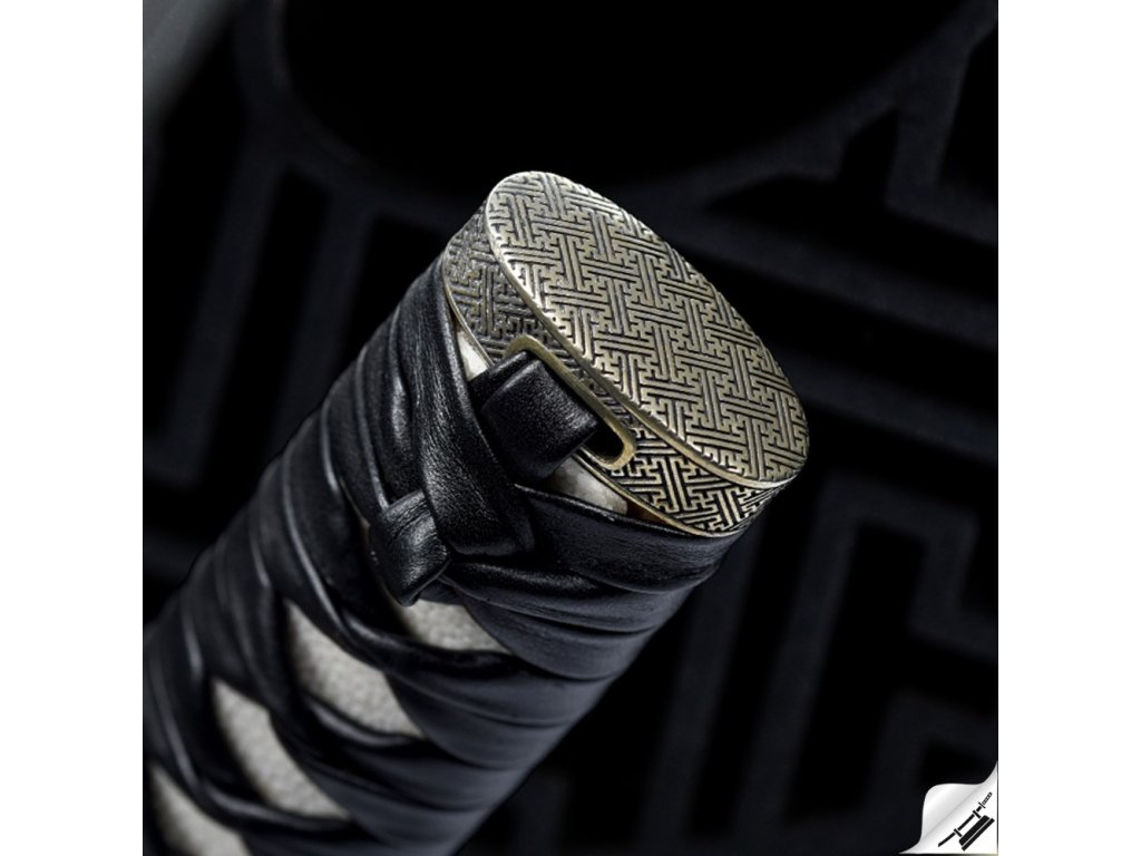 • Tsuka - (rukojeť) dřevěné jádro, potažena pravou rejnočí kůží (Samegawa), s černou koženou omotávkou ITO. Čepel zajištěna 2 kolíky "mekugi".