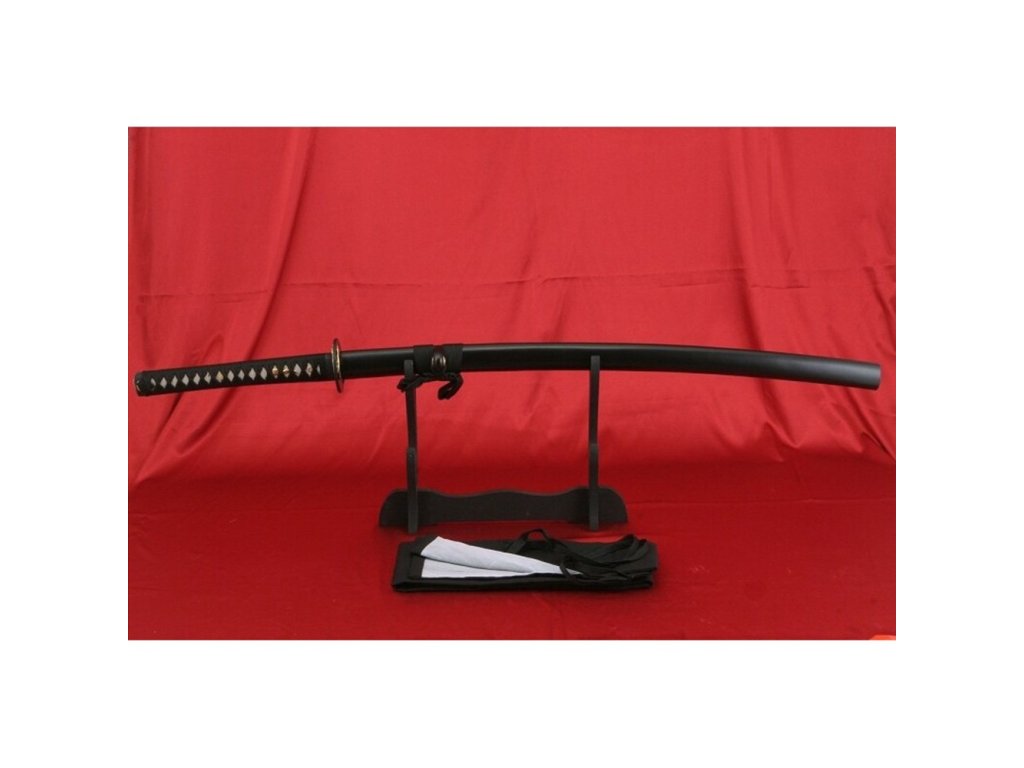 Kovaný japonský meč ODAWARA s leštěnou imitací kalení (hamonu) a žlábkem Bo-Hi. Ostrý (broušený) samurajský meč KATANA najde své uplatnění jako dekorace, ale i k aktivnímu nácviku bojového umění. Katana není zcela vhodná k sekání tvrdších matreriálů. Ocel není parciálně zakalena (hamon je pouze leštěný) a proto má nízký stupeň tvrdosti. Sekání tvrdých materiálů by zanechalo stopy na ostří meče. Atraktivní a ostrá čepel, černá matná saya plus tsuka (rukojeť), která je potažena pravou rejnočí kůží, to vše dělá tuto katanu velmi zajímavou a žádanou. Katana je uložena v černém plátěném vaku a papírové krabici. Tento japonský meč katana je možné kombinovat do setu s Wakizashi ODAWARA (W-820). Ostří katany zdobí leštěná imitace kalicí linky hamonu. Firma Dellinger se zříká jakékoliv odpovědnosti za zranění a poškození vzniklá při použití. Schraňujte katanu mimo dosah dětí ! Jakákoliv manipulace se samurajským mečem je na vaší vlastní odpovědnost. Nezapomeňte, že máte ve svých rukou smrtelnou zbraň !