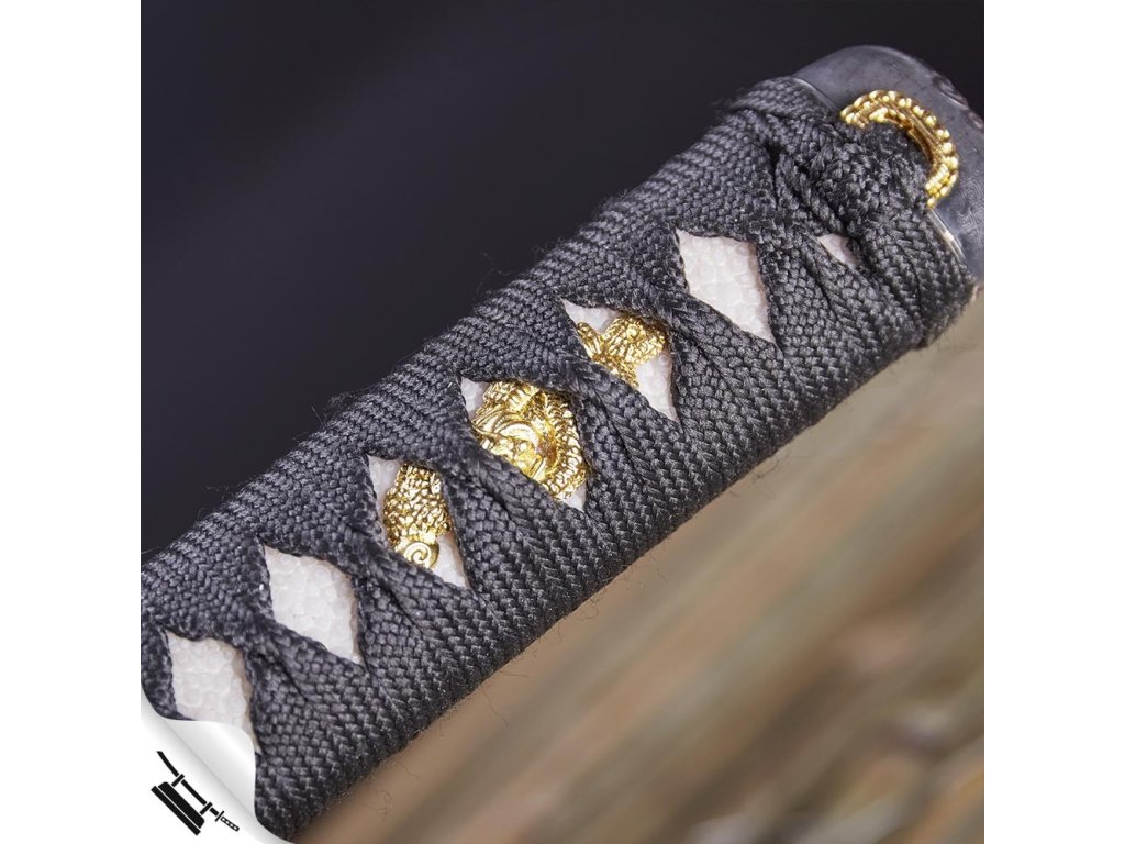 ✅ tsuka: (rukojeť) dřevěné jádro s vloženou pravou kůží z rejnoka (Samegawa) oplet ITO černé barvy. Čepel katany je zajištěna dvěma bambusovými kolíy (mekugi). Čepel od rukojeti můžete odmontovat vytažením těchto kolíků. Na obou stranách Tsuky je menuki (ornament).
