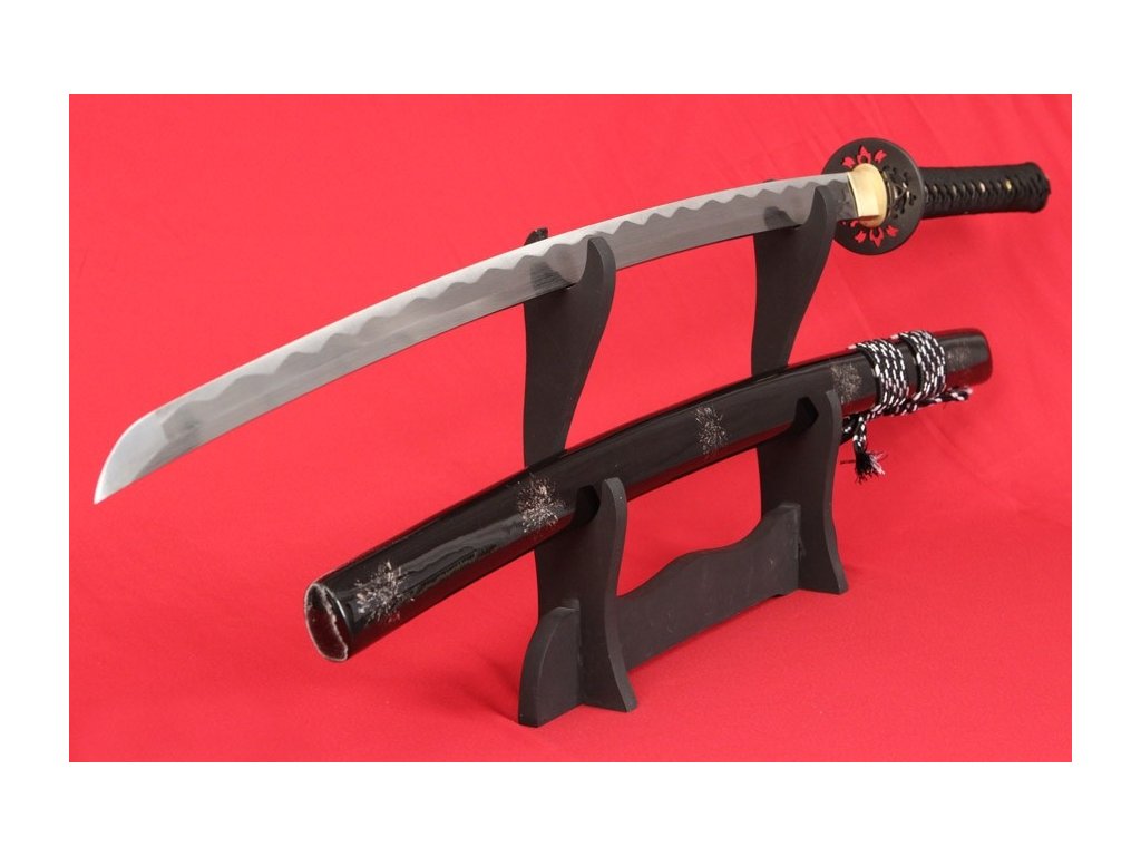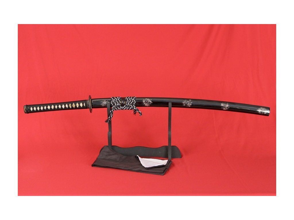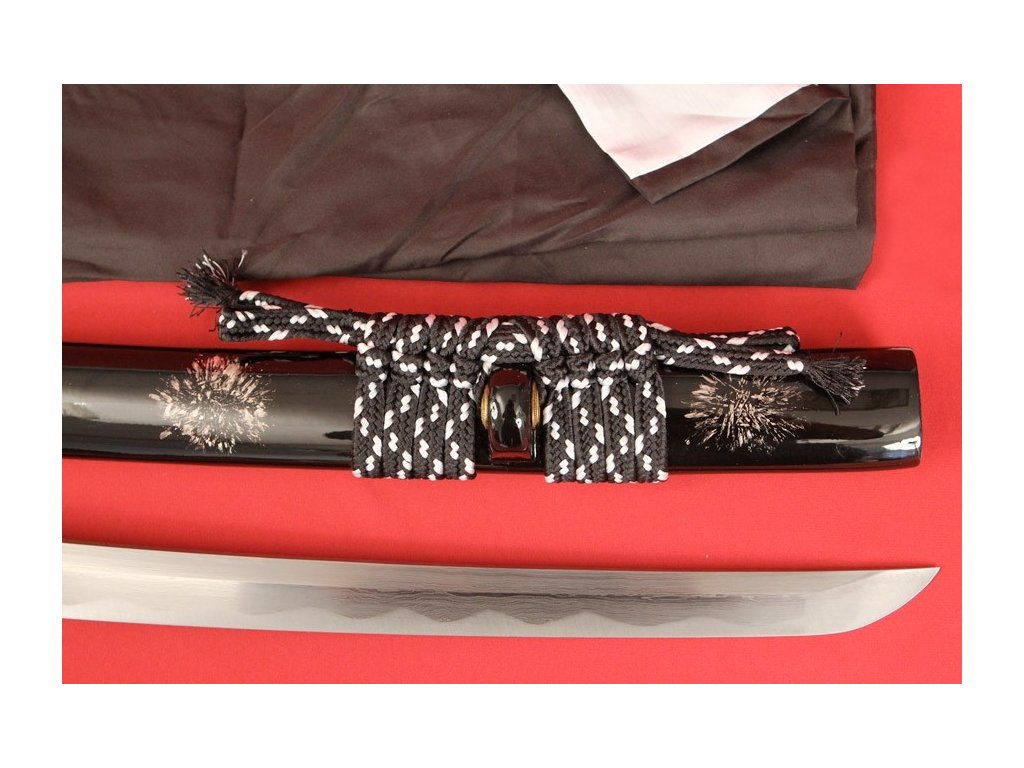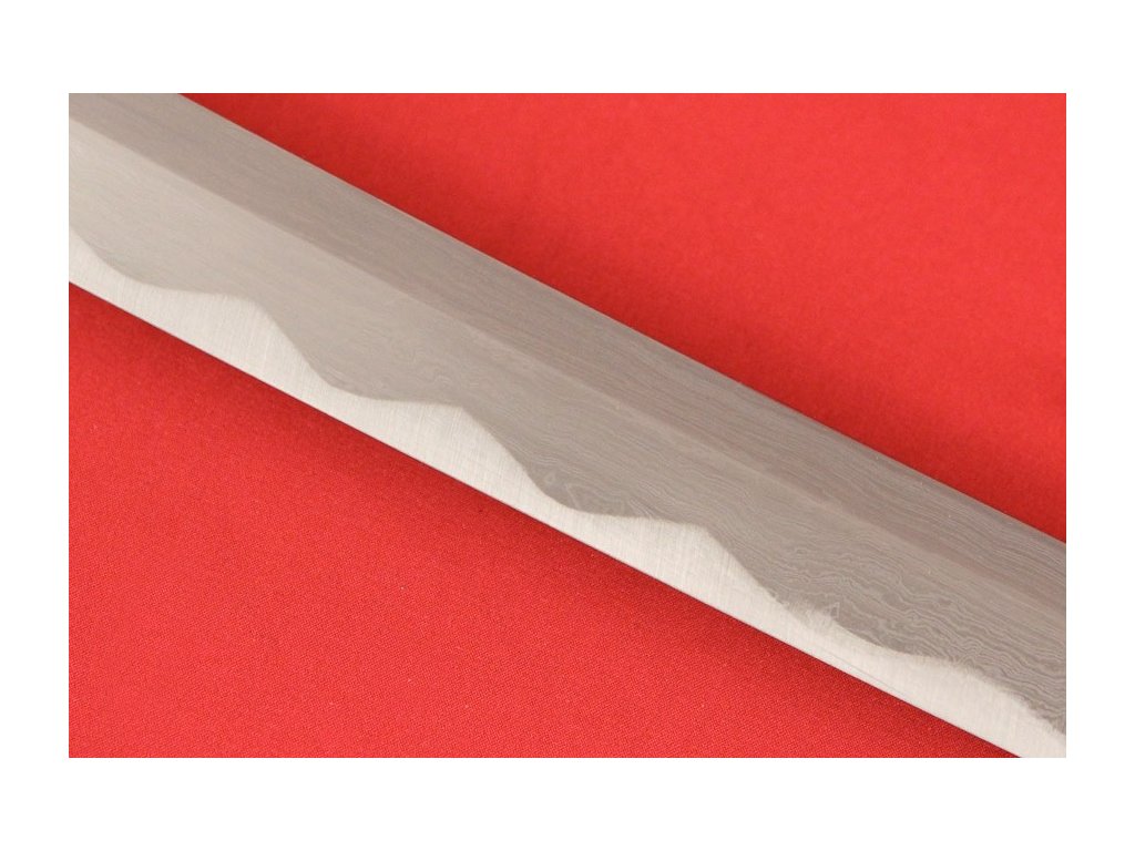 katana TOMOMI z překládané oceli AISI 1045 s leštěnou imitací hamonu