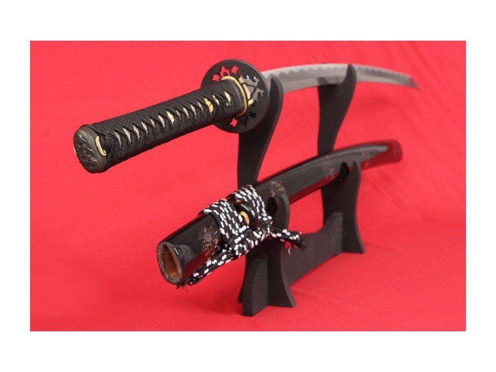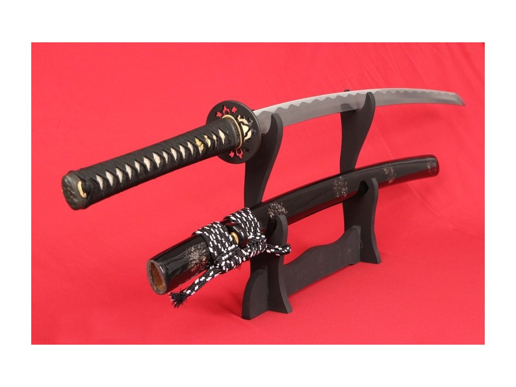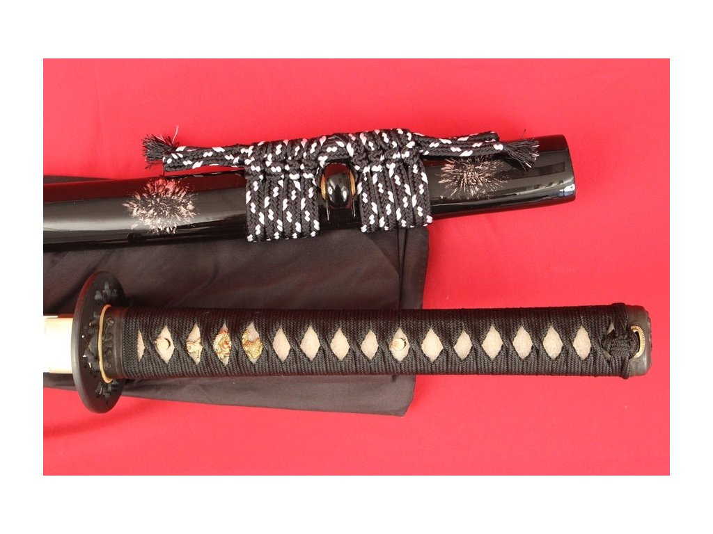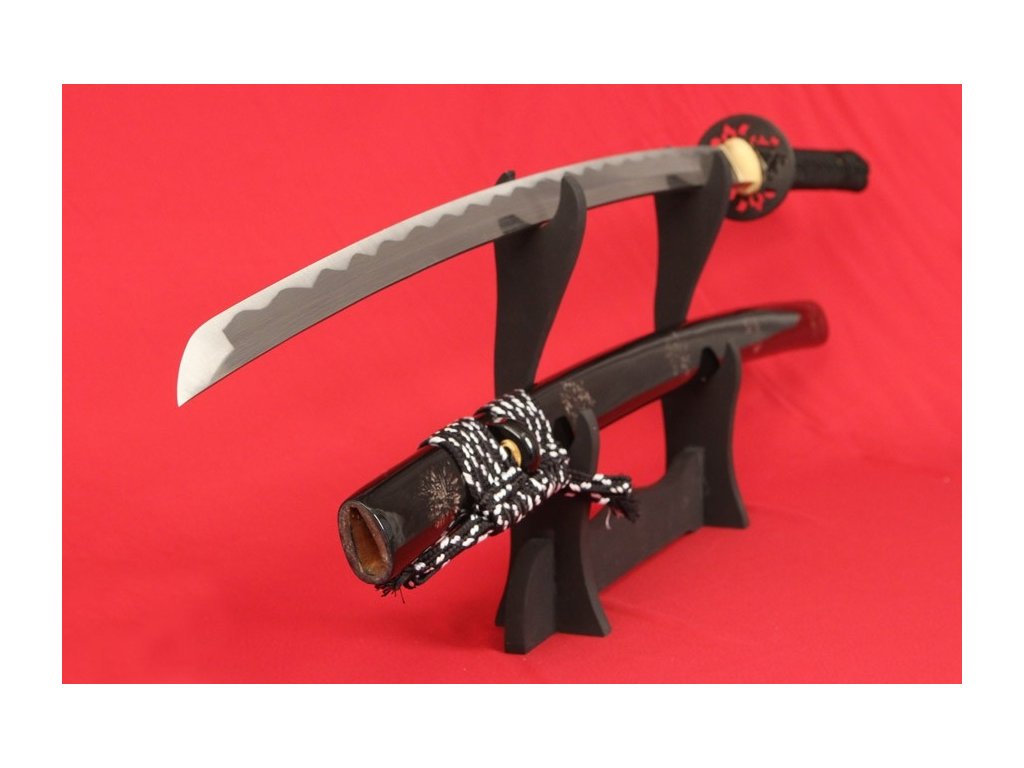 katana TOMOMI z překládané oceli AISI 1045 s leštěnou imitací hamonu