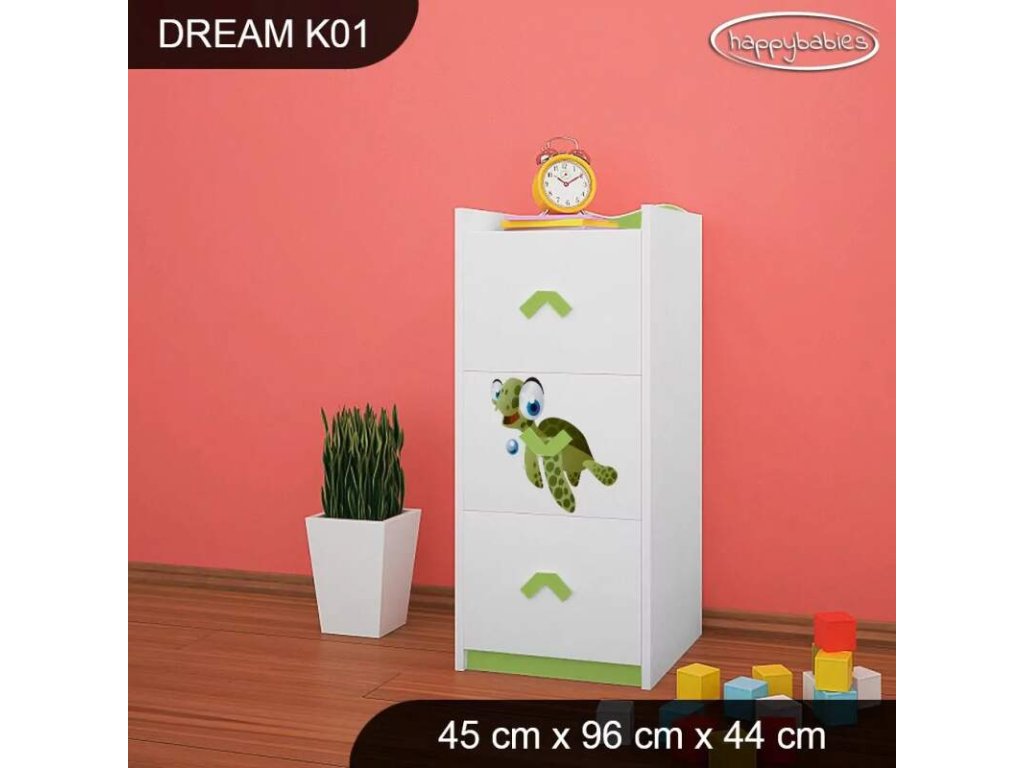 Dětské komody patří k základní výbavě každého pokojíčku. Komody jsou velmi praktické a můžeme je použít jak na oblečení pro děti, tak na hračky nebo knížky. Komoda obsahuje 3 šuplíky. Materiál: lamino 18 mm Barva: růžová, bílá, wenge, hruška, zelená, modrá Rozměr: 45 cm x 96 cm x 44 cm Ve stejném motivu si můžete zakoupit také skříň, regál, knihovnu, psací stůl, noční stolek, box na hračky nebo poličku.Buďte první, kdo napíše příspěvek k této položce.