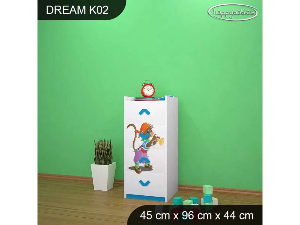 Dětské komody patří k základní výbavě každého pokojíčku. Komody jsou velmi praktické a můžeme je použít jak na oblečení pro děti, tak na hračky nebo knížky. Komoda obsahuje 4 šuplíky. Materiál: lamino 18 mm Barva: růžová, bílá, wenge, hruška, zelená, modrá Rozměr: 45 cm x 96 cm x 44 cm Ve stejném motivu si můžete zakoupit také skříň, regál, knihovnu, psací stůl, noční stolek, box na hračky nebo poličku.Buďte první, kdo napíše příspěvek k této položce.