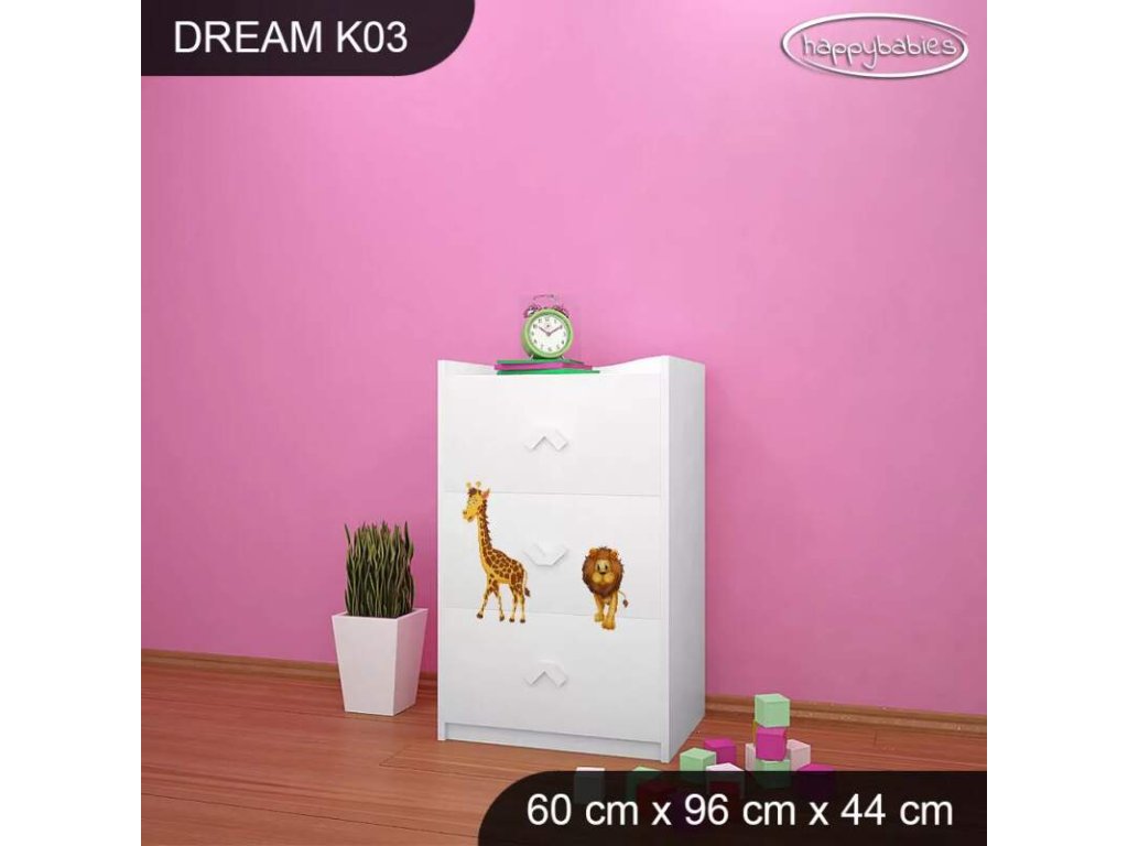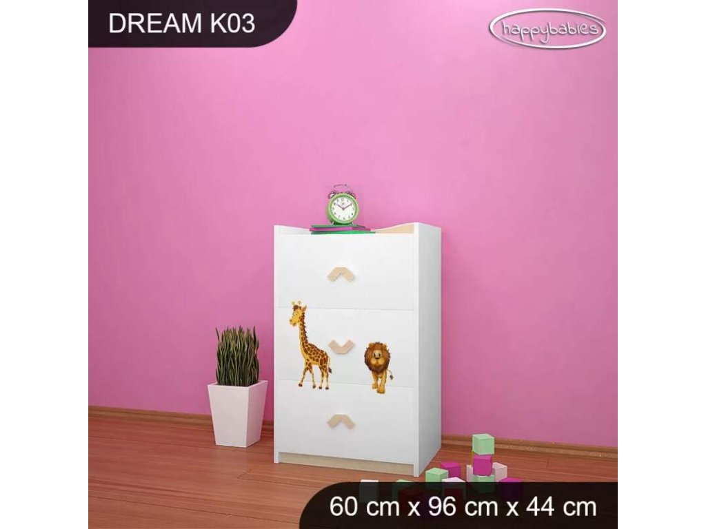 Dětské komody patří k základní výbavě každého pokojíčku. Komody jsou velmi praktické a můžeme je použít jak na oblečení pro děti, tak na hračky nebo knížky. Komoda obsahuje 3 šuplíky. Materiál: lamino 18 mm Barva: růžová, bílá, wenge, hruška, zelená, modrá Rozměr: 60 cm x 96 cm x 44 cm Ve stejném motivu si můžete zakoupit také skříň, regál, knihovnu, psací stůl, noční stolek, box na hračky nebo poličku.Buďte první, kdo napíše příspěvek k této položce.