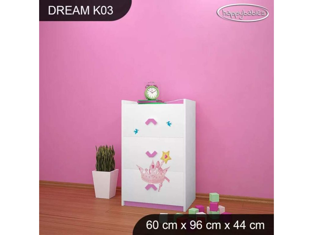 Dětské komody patří k základní výbavě každého pokojíčku. Komody jsou velmi praktické a můžeme je použít jak na oblečení pro děti, tak na hračky nebo knížky. Komoda obsahuje 3 šuplíky. Materiál: lamino 18 mm Barva: růžová, bílá, wenge, hruška, zelená, modrá Rozměr: 60 cm x 96 cm x 44 cm Ve stejném motivu si můžete zakoupit také skříň, regál, knihovnu, psací stůl, noční stolek, box na hračky nebo poličku.Buďte první, kdo napíše příspěvek k této položce.